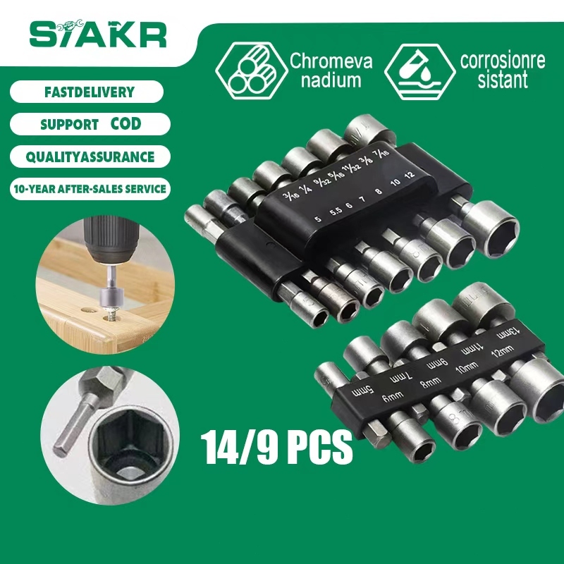 Steel Power Nut Driver Drill Bit Set Hex Shank Metric Socket 14/9PCS Electric Wrench Adapter