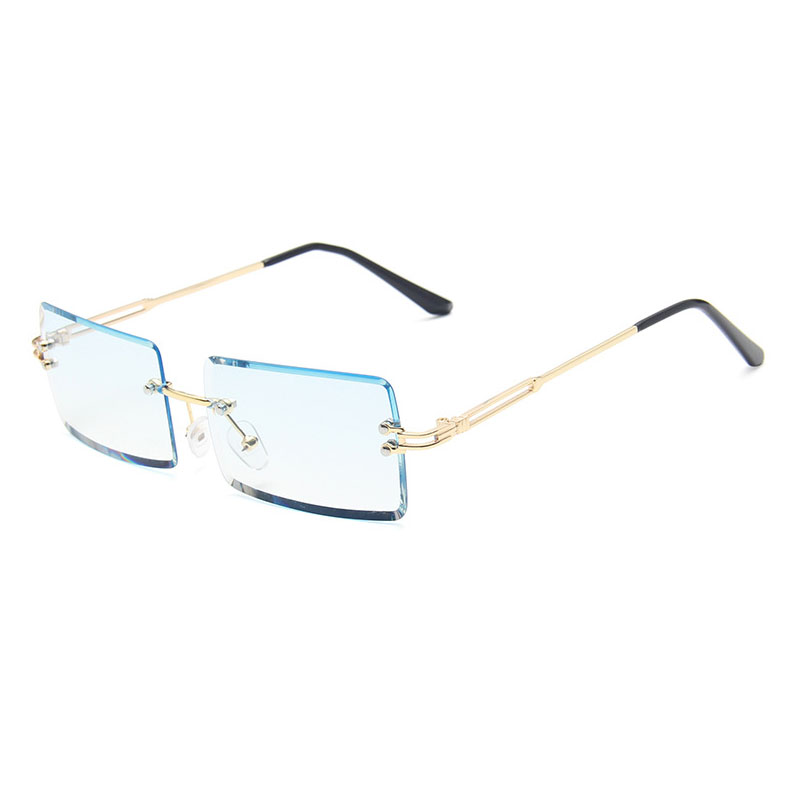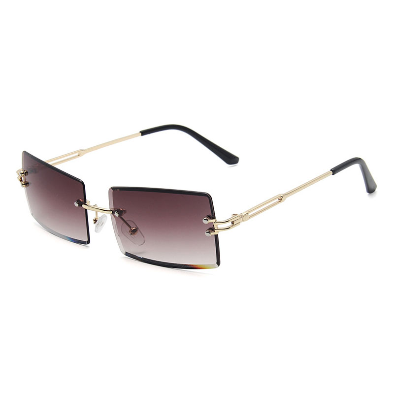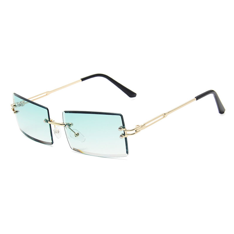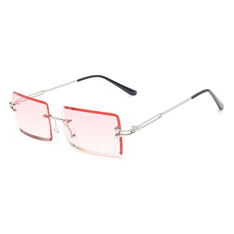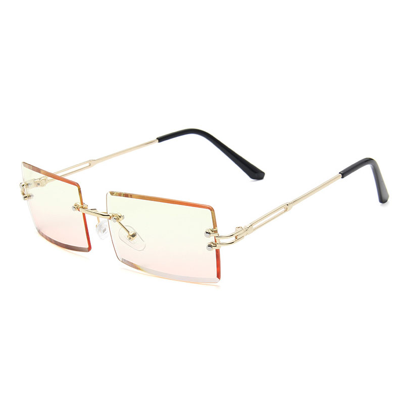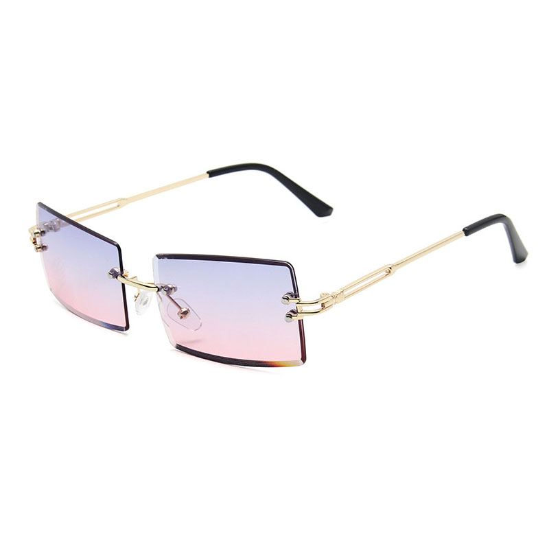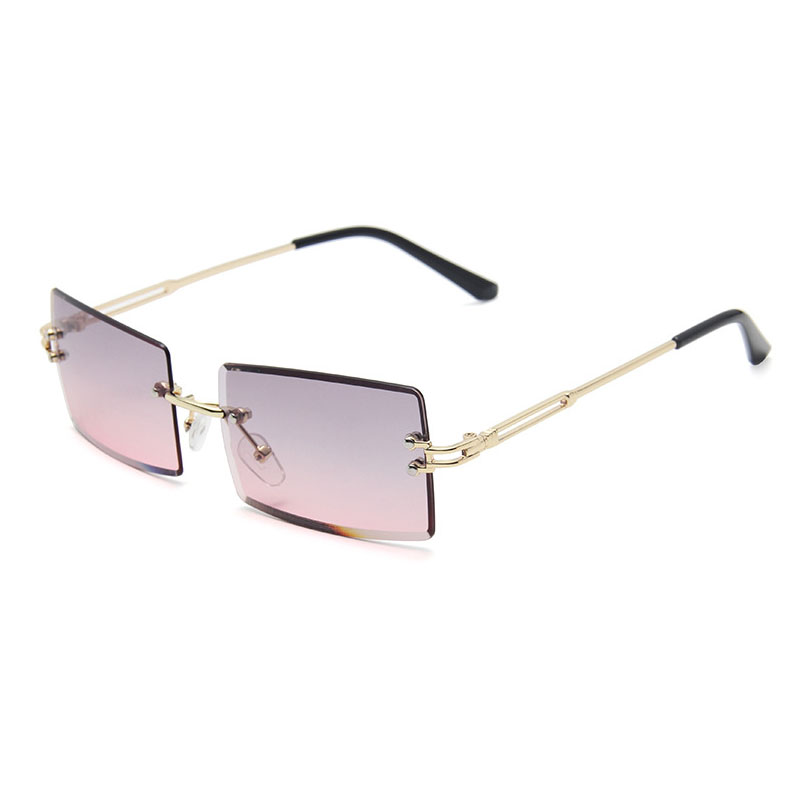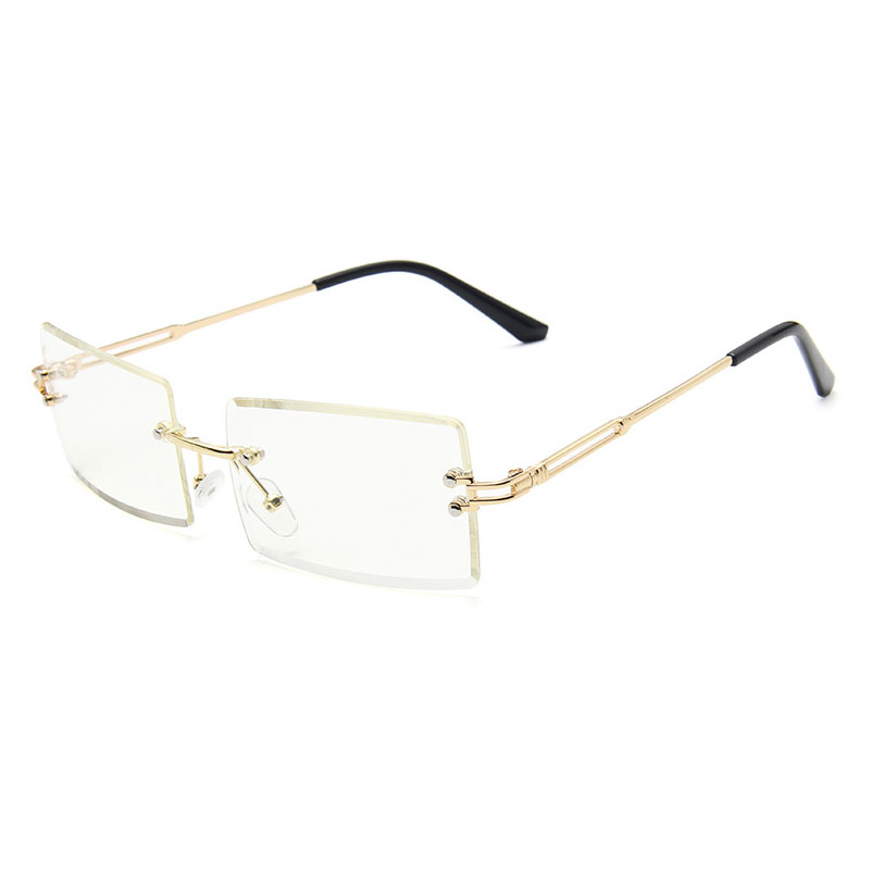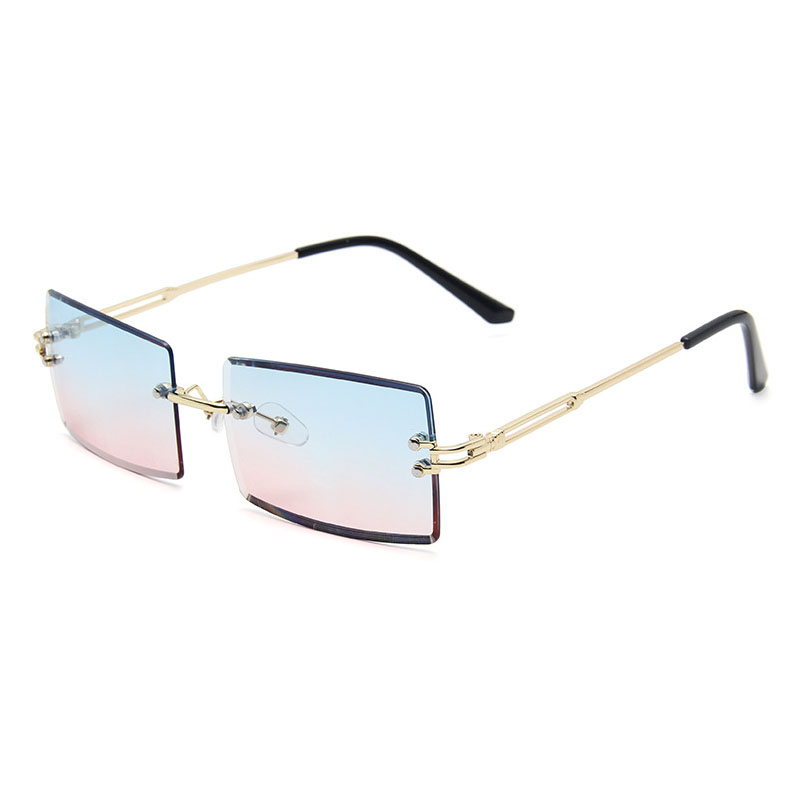 Retro Vintage Tinted Small Rectangle Rimless Sunglasses For Men Women