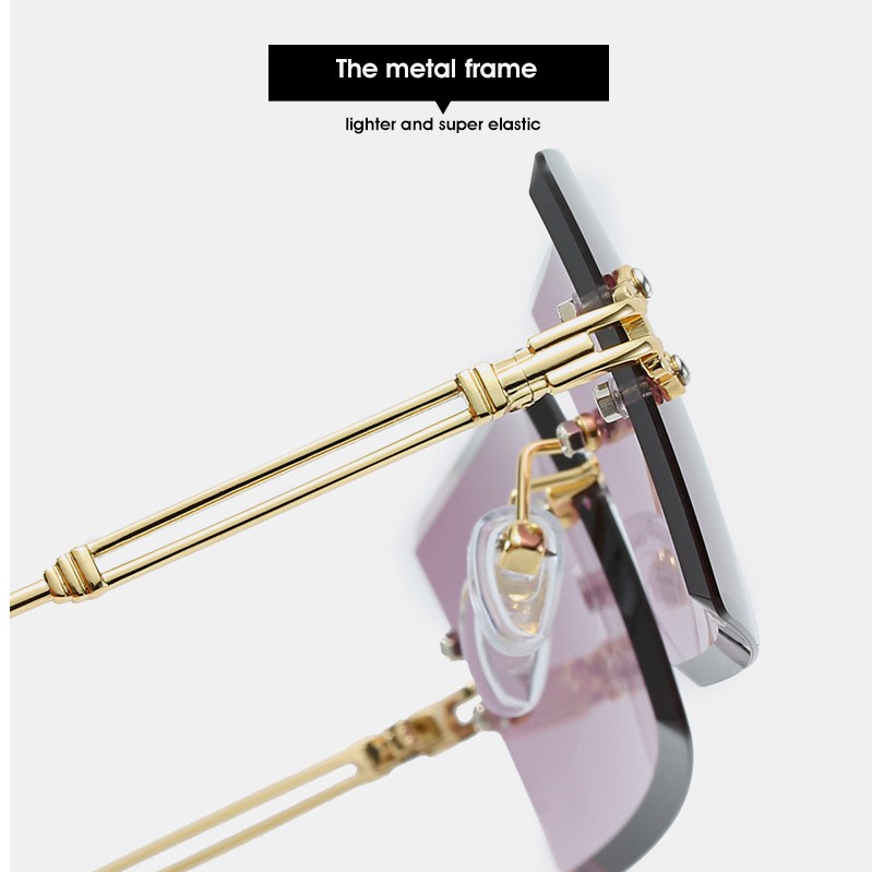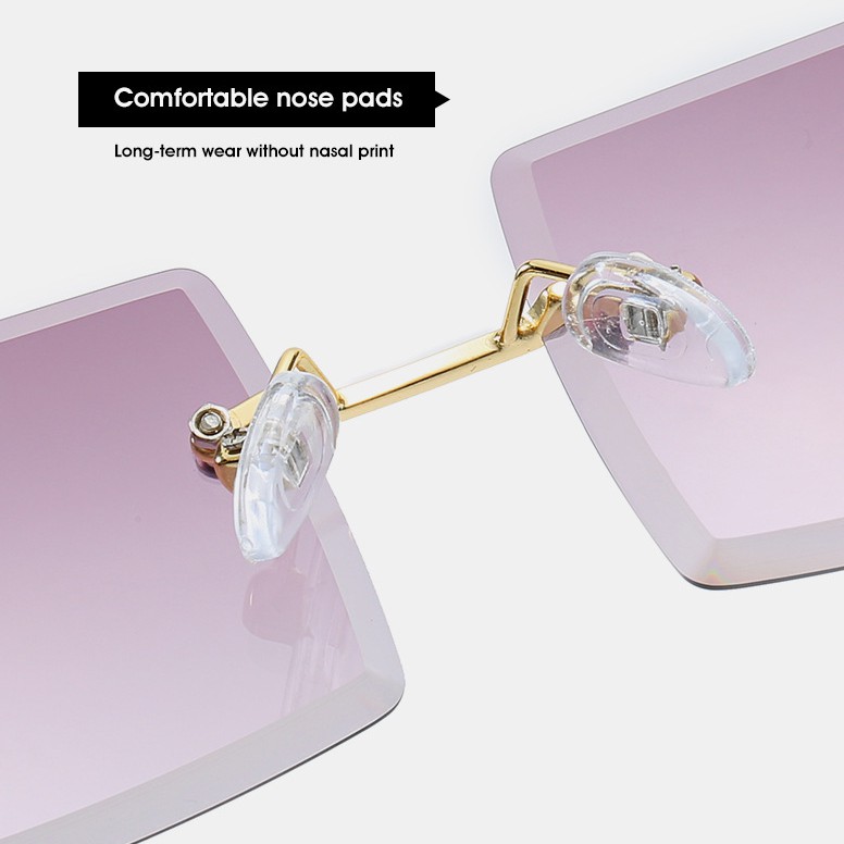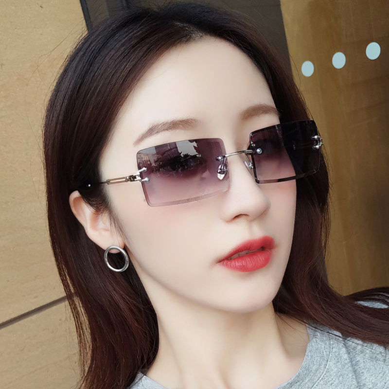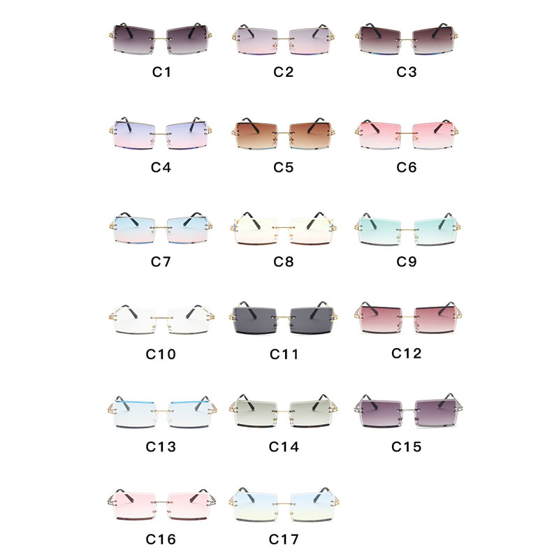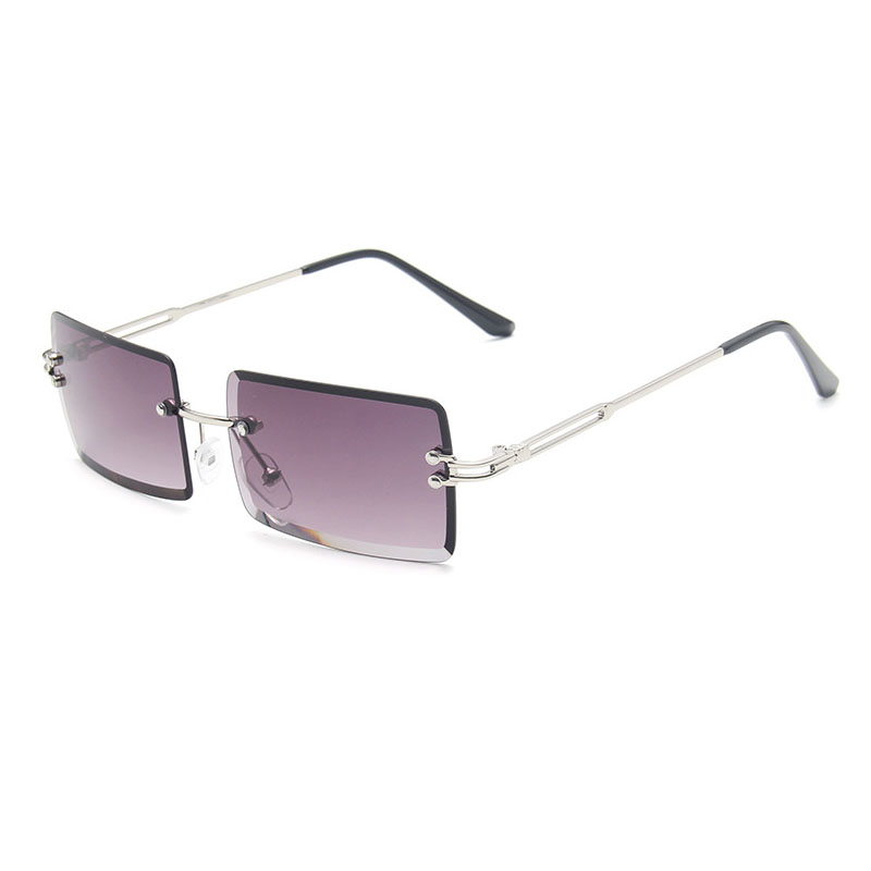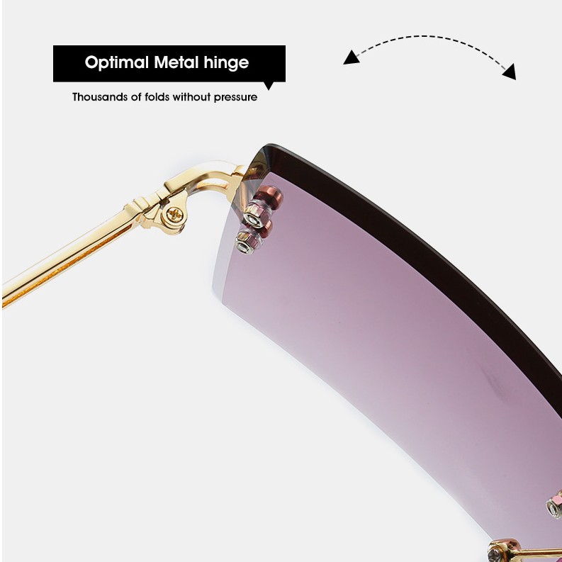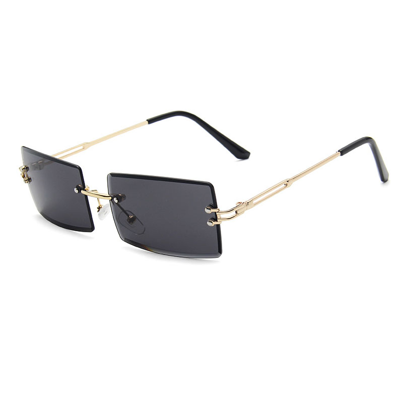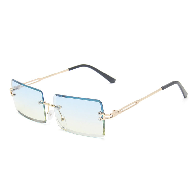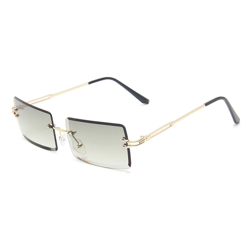 Retro Vintage Tinted Small Rectangle Rimless Sunglasses For Men Women