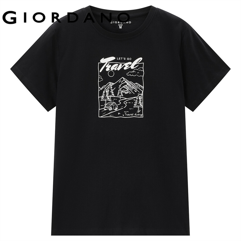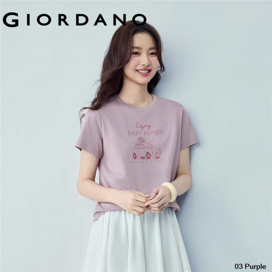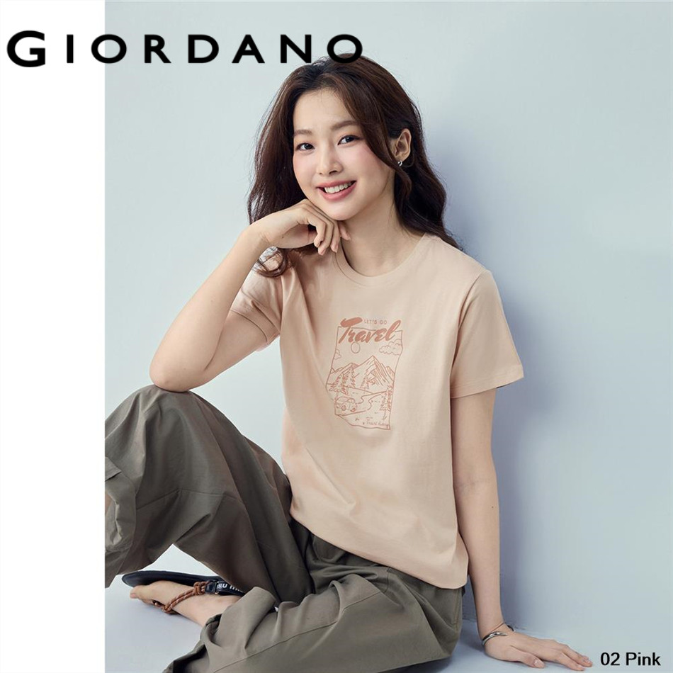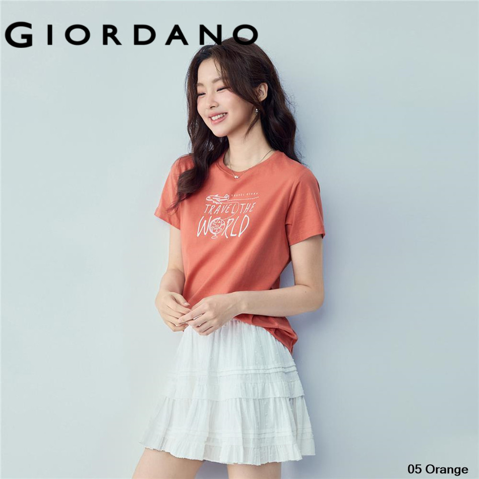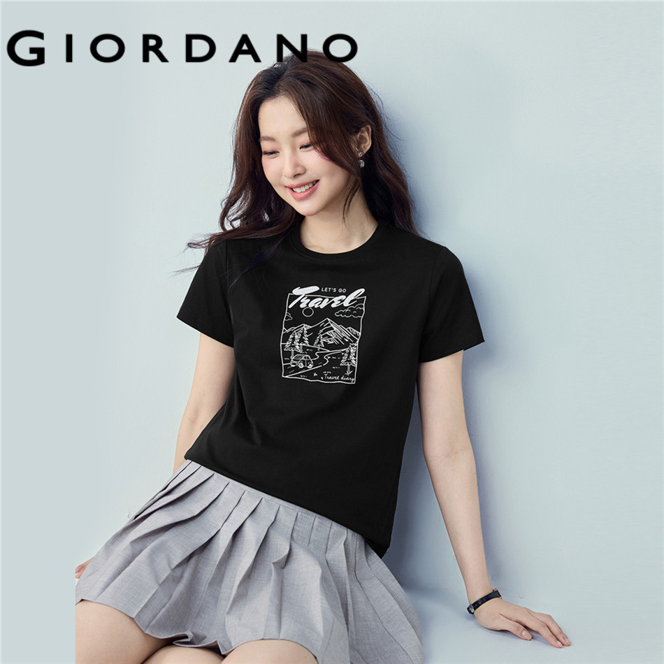 GIORDANO WOMEN 100% Cotton travel print short sleeve tee 13394202