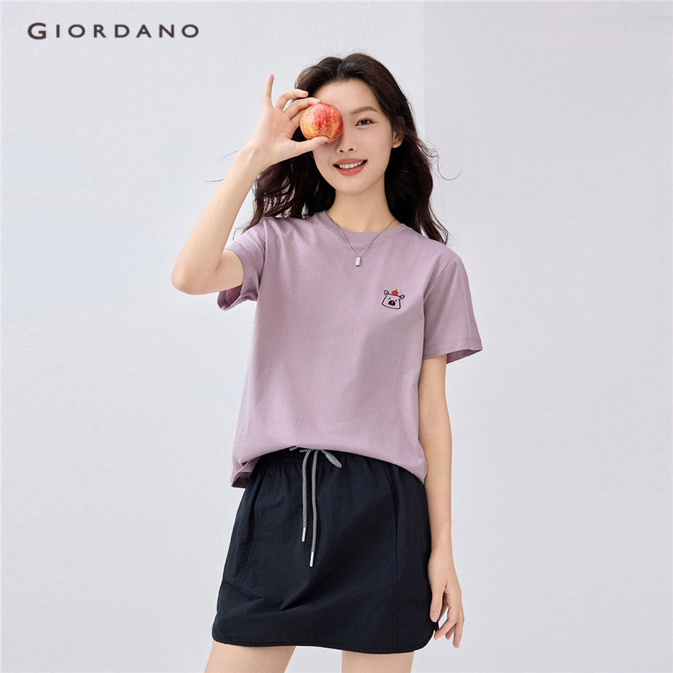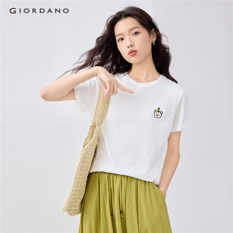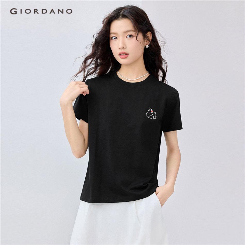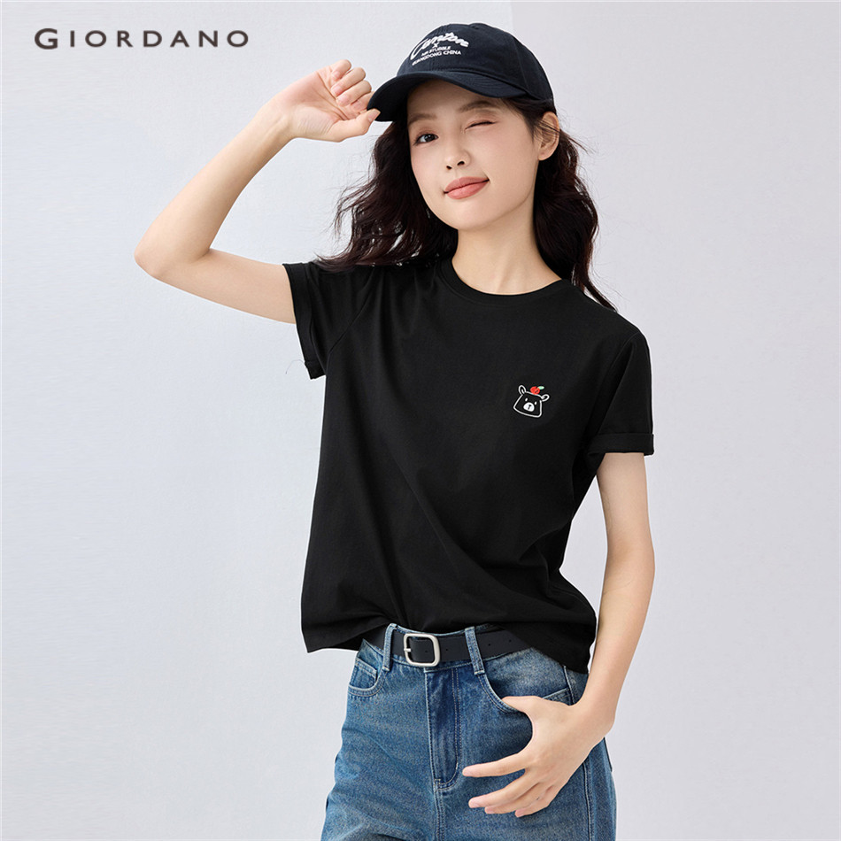 GIORDANO WOMEN Animal head embroidery short sleeve cotton tee 13325324