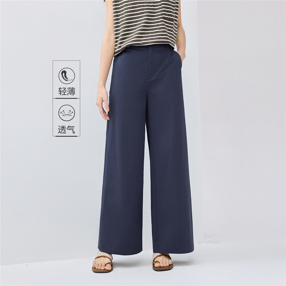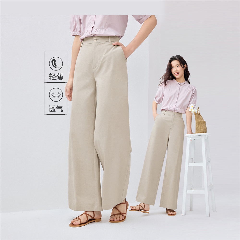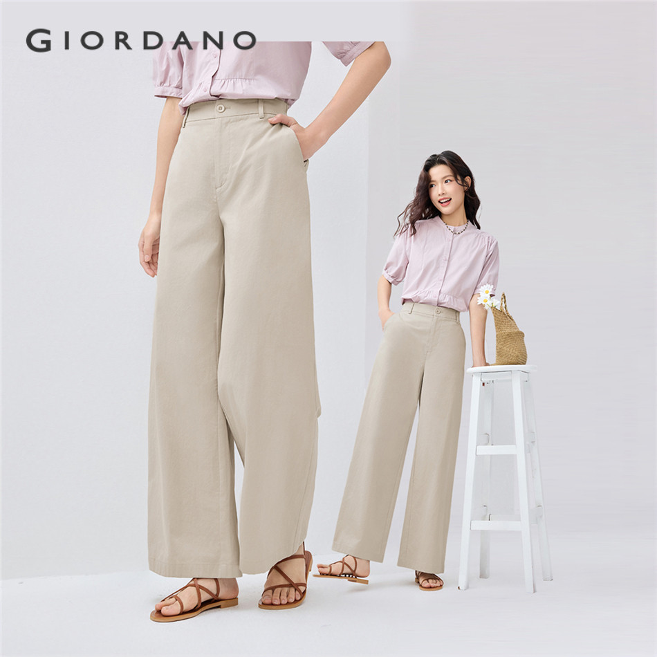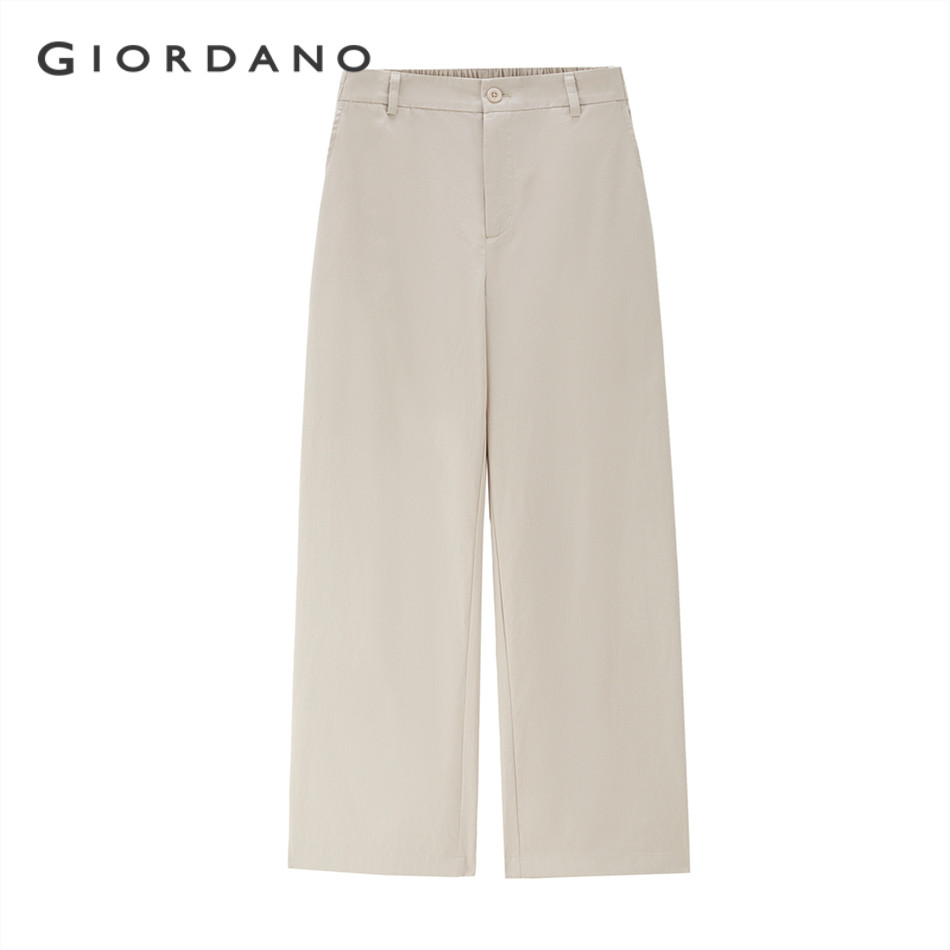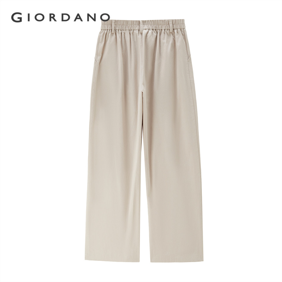 GIORDANO WOMEN 100% Cotton half elastic waist wide leg pants 13415227