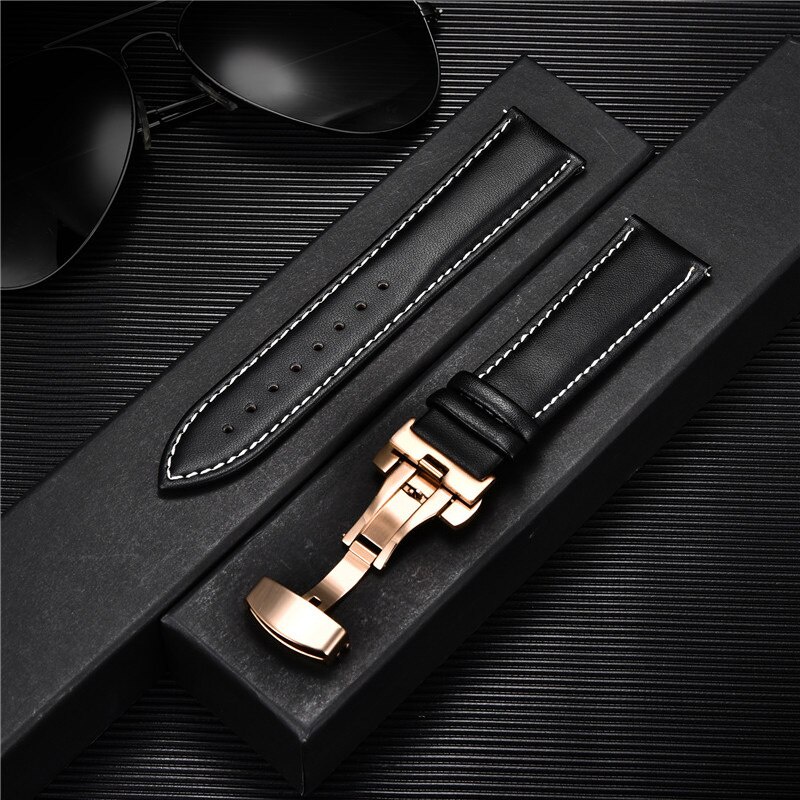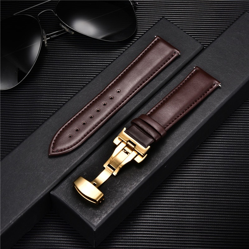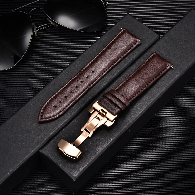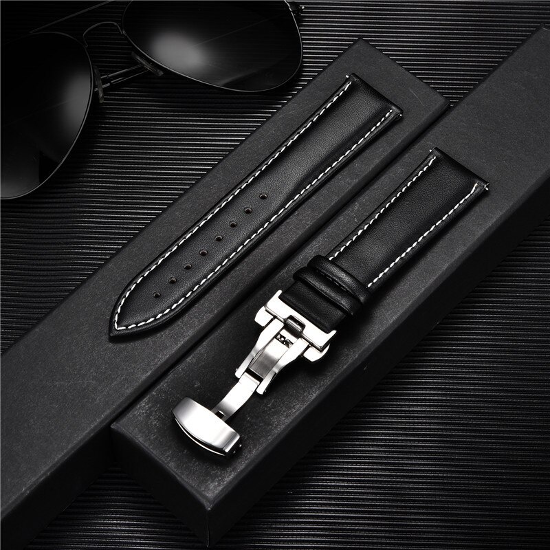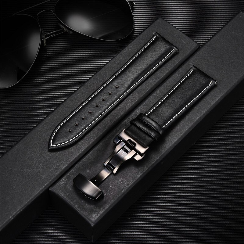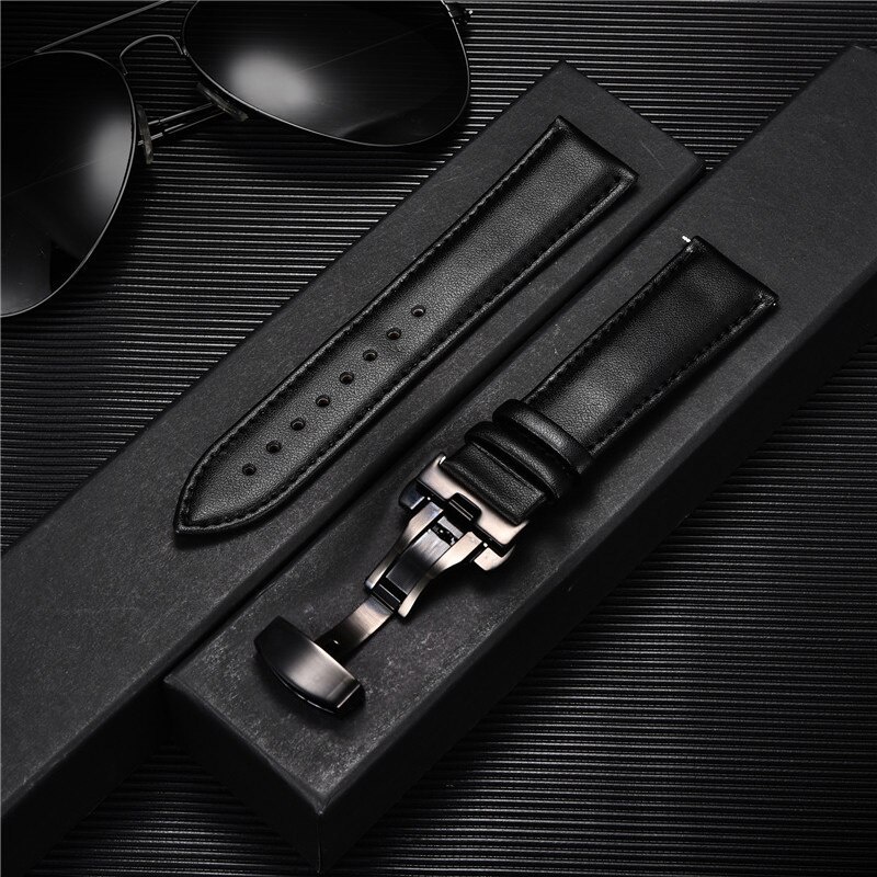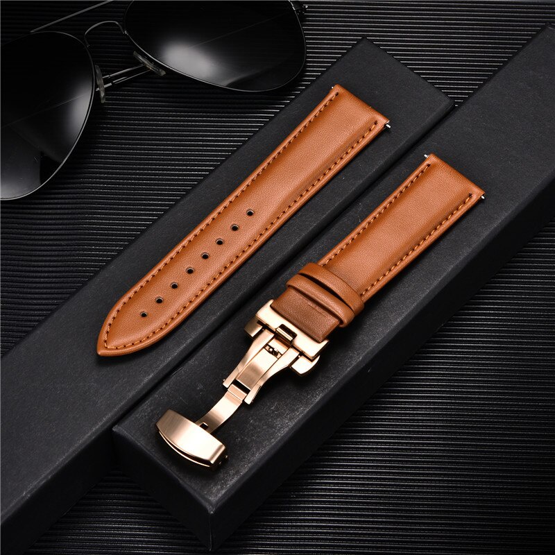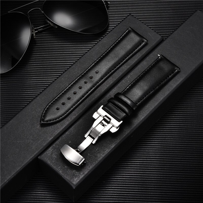 Samsung Galaxy Watch 4 44mm 40mm Smooth Genuine Calfskin Leather Watchband Straps with Solid Automatic Butterfly Buckle for Galaxy Watch4 Classic 46mm 42mm