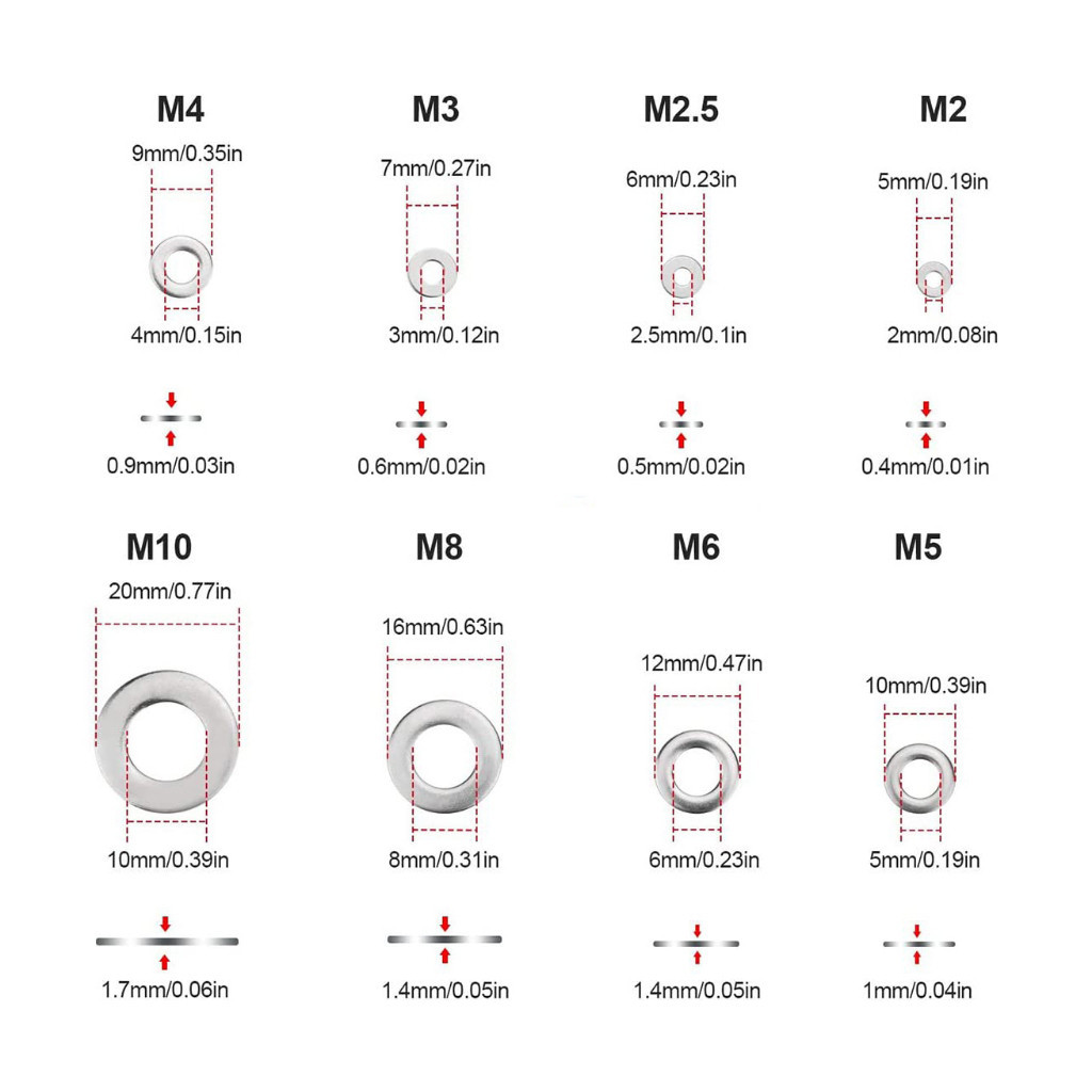 360PCS Flat Washers 304 Stainless Steel M3 M4 M5 M6 M8 M10 Flat Washer Plain Gasket Spacers Kit