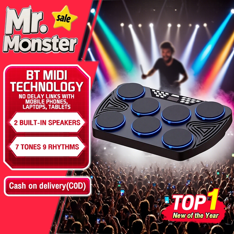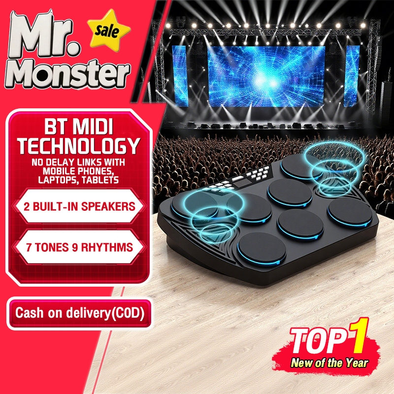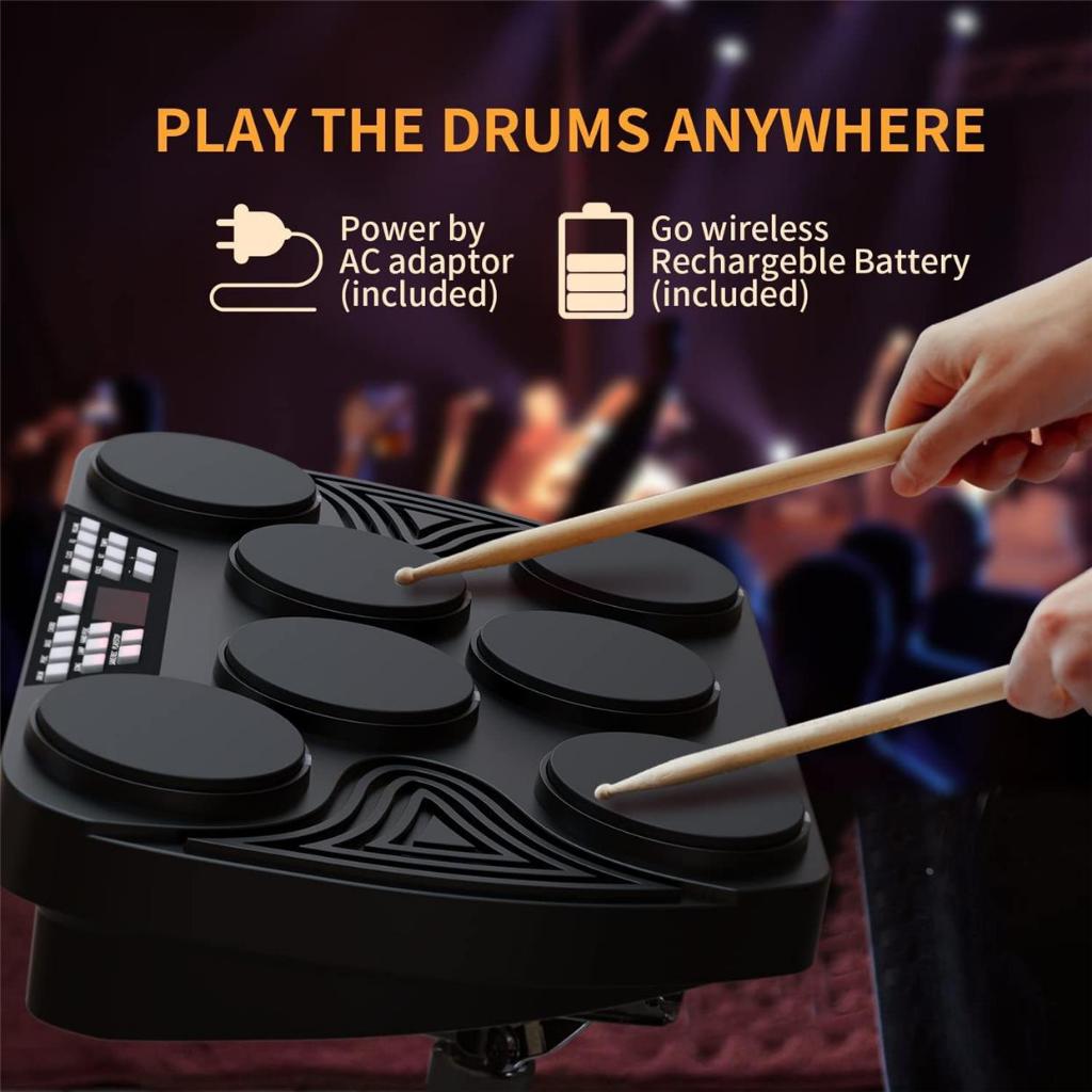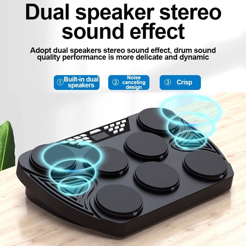 BANSIDdesktop electronic drum set 2 speakers Wireless battery powered Portable 7-PAD electronic drum