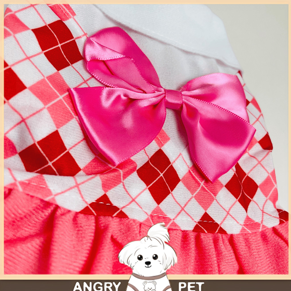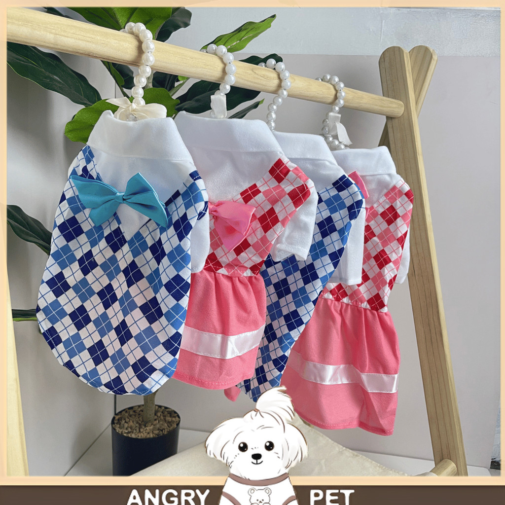 KAWAII QA°01 Pet Bowknot with Collar Plaid Shirt Skirt Summer Dress for Pets