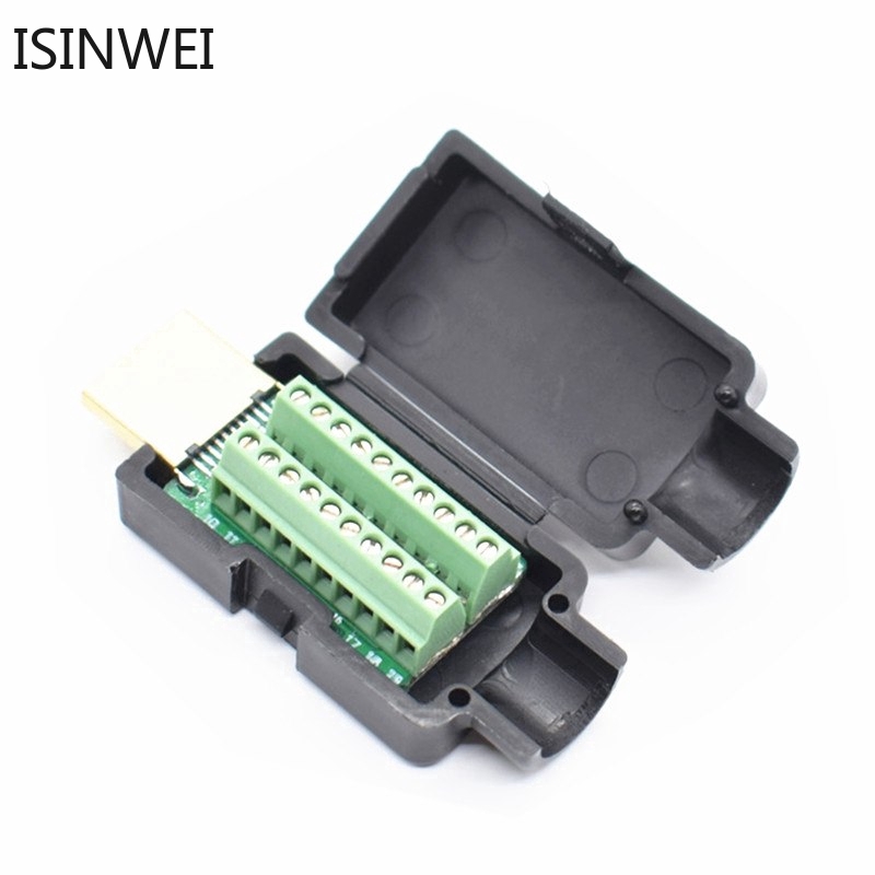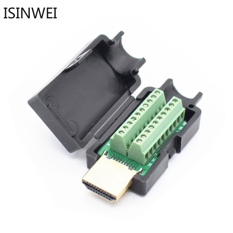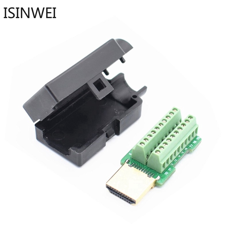 HDMI Male 19P Plug Breakout Terminals Solderless Connector With Black Cover