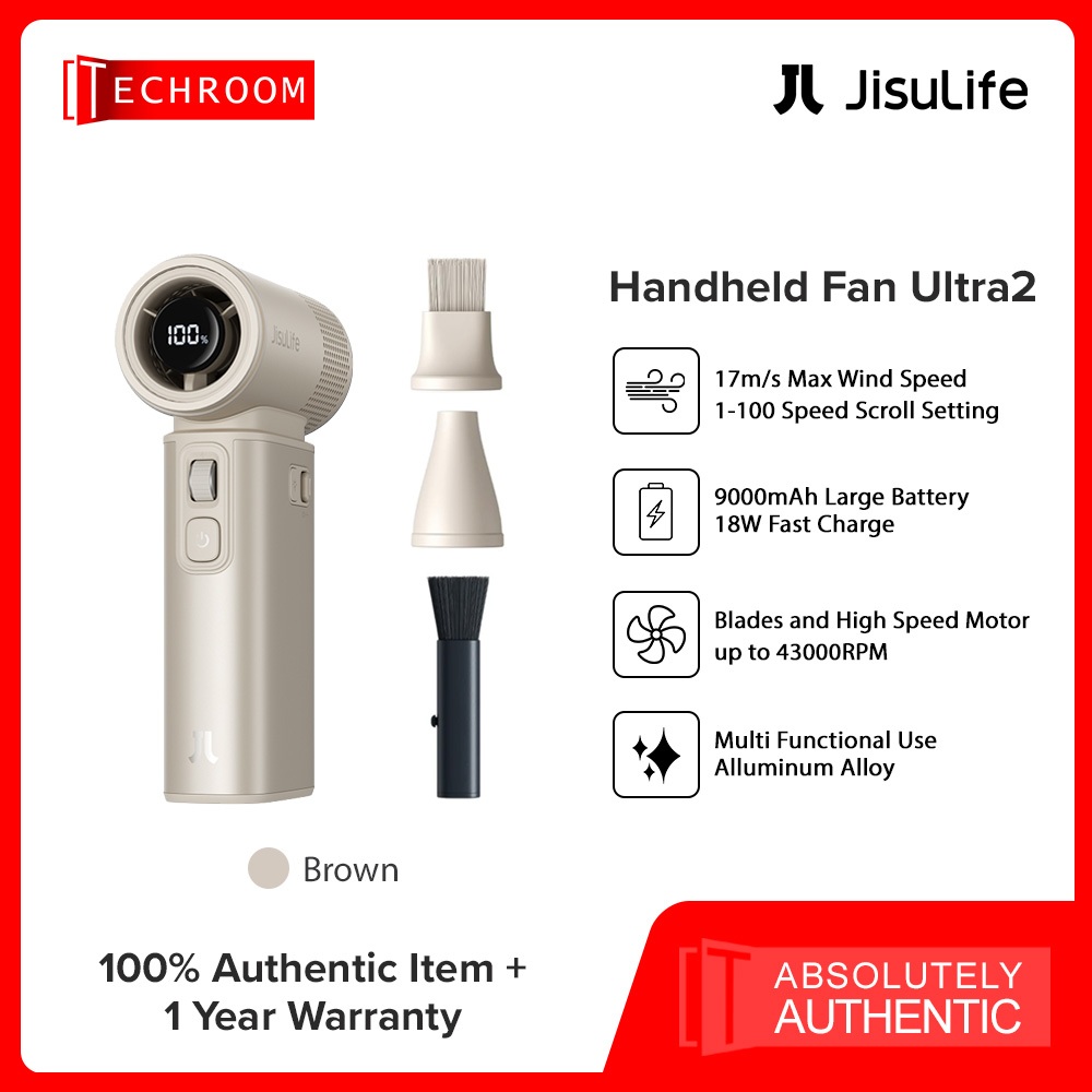 JISULIFE ULTRA2 Handheld Fan 9000mAh | 43,000 RPM Turbo Motor | 1–100 Speed Adjustable