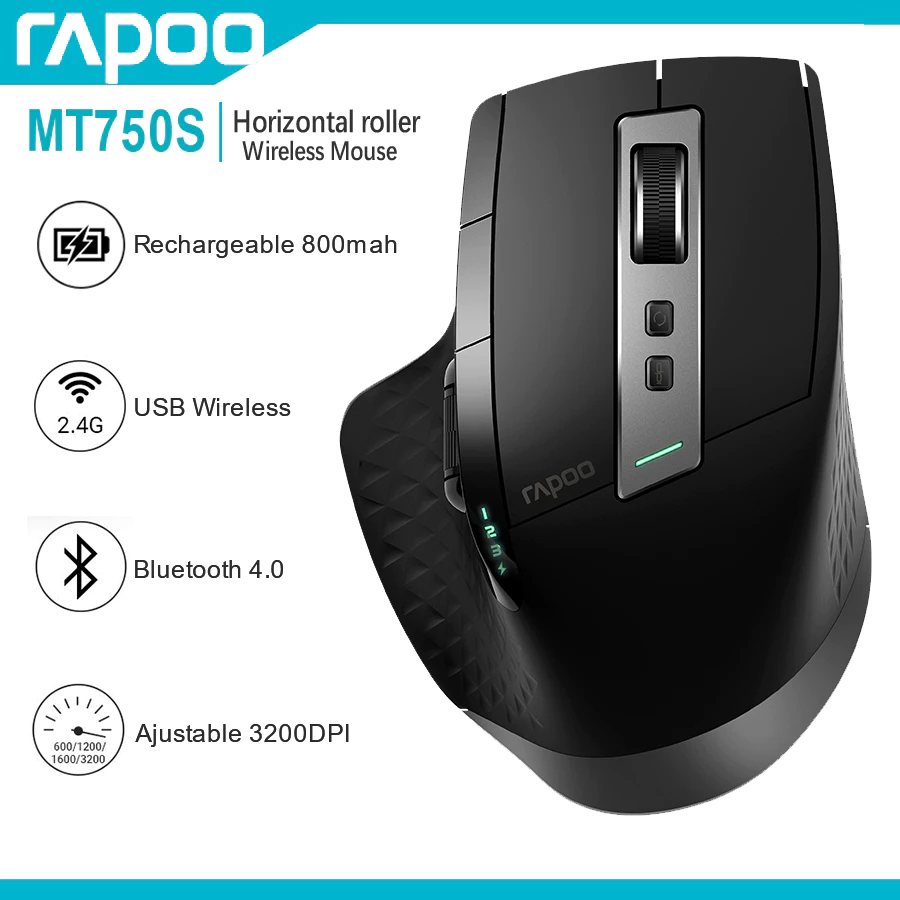 Rapoo MT750S 3200DPI Rechargeable Ergonomic Bluetooth Wireless Mouse for Laptop