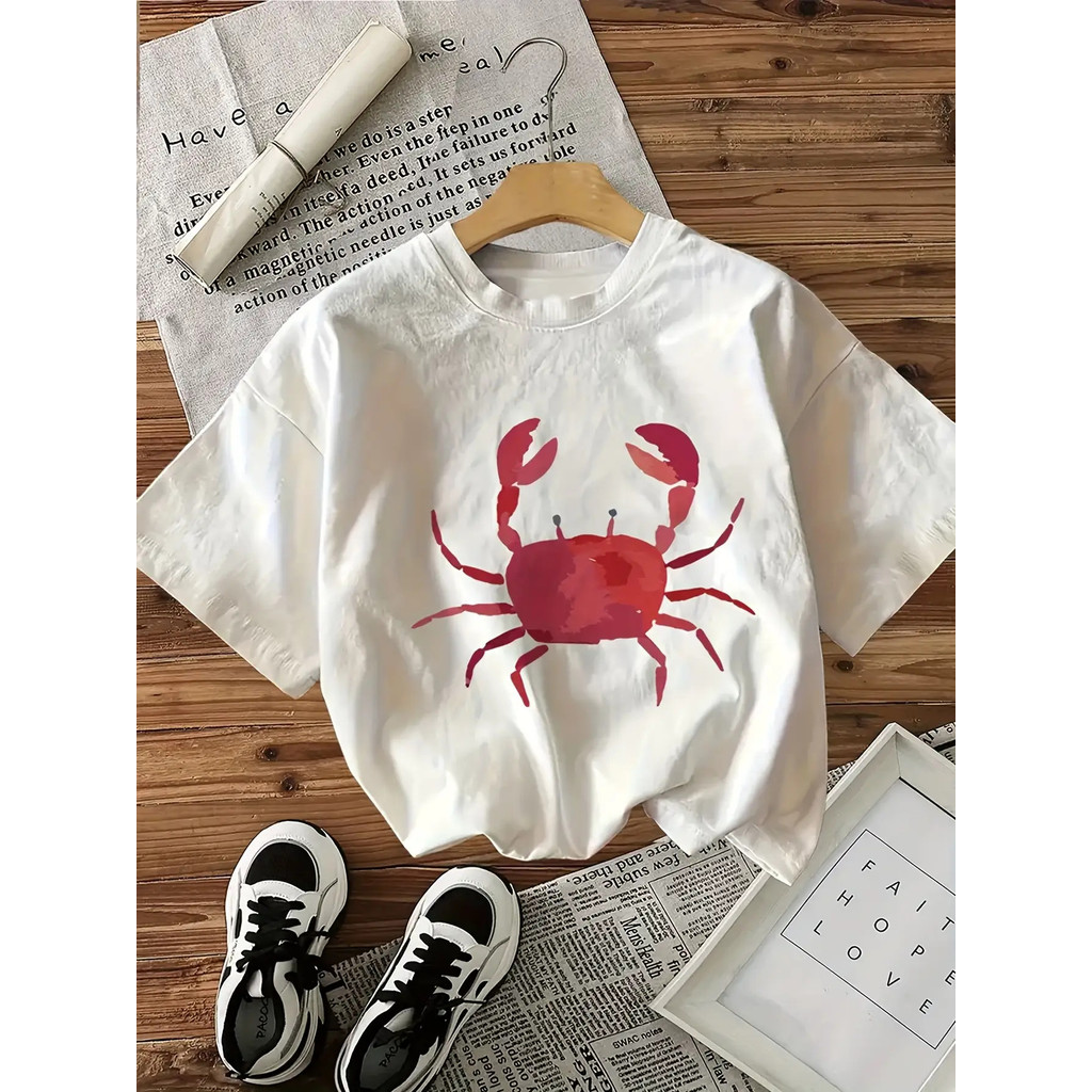 Women's Casual Short Sleeve T-Shirt with Red Crab Graphic Print - Soft Breathable Fabric, Relaxed Fi