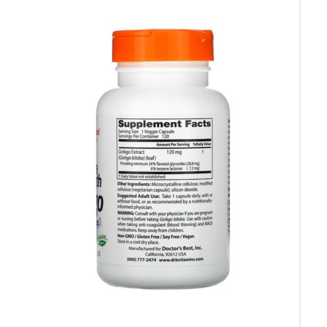 Doctor's Best Extra Strength Ginkgo 120mg | Brain & Memory Support | 120 Veggie Caps