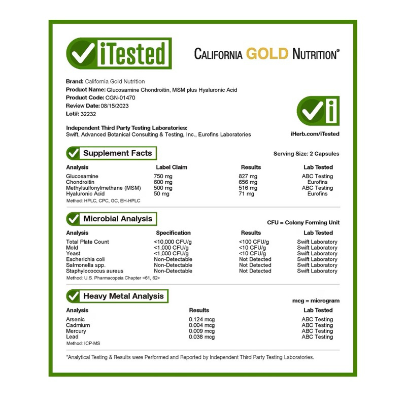 Glucosamine, Chondroitin, MSM Plus HA 60 Capsules by California Gold Nutrition