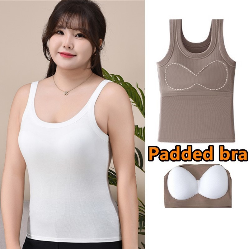40-95KG Double Lining Top Padded Sando Tops For Women Basic Tops Double Lining Top Plus Size White Top Padded Sleeveless Spaghetti Top Slim Fit Plus Size SUMMER OUTFIT