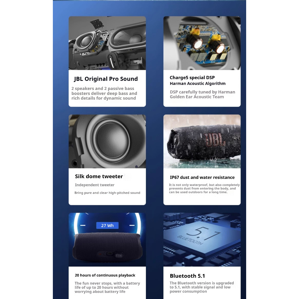 JBL Charge 5 Bluetooth Speaker – IP67 Dustproof/Waterproof, Punchy Bass & 20H Battery | Take Your Music Hiking, Traveling & Anywhere!