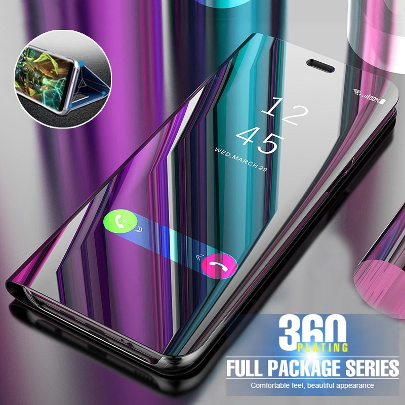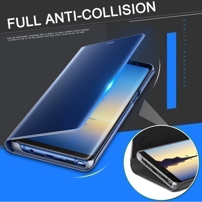 【Samsung Note 8/9/10 S10/S10 plus】Smart Clear View Plating Mirror Phone Case Flip Leather Cover Case