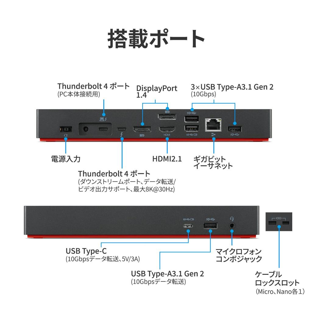 《Direct from Japan》Lenovo ThinkPad Universal Thunderbolt 4 Dock Hub Docking Station DisplayPort HDMI USB-A USB Type-C Thunderbolt 4 Ethernet Combo Jack Security Keyhole Daisy Chain Support 40B00135JP