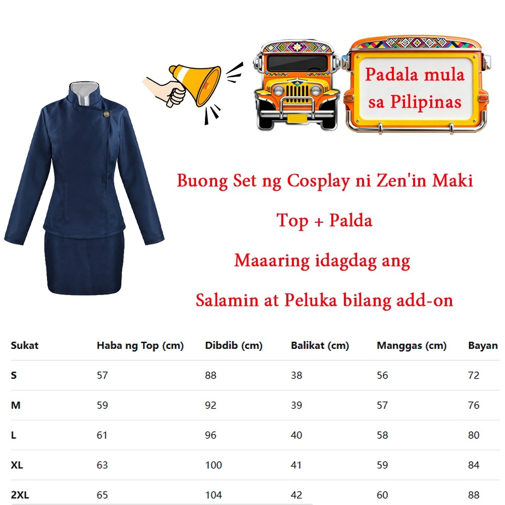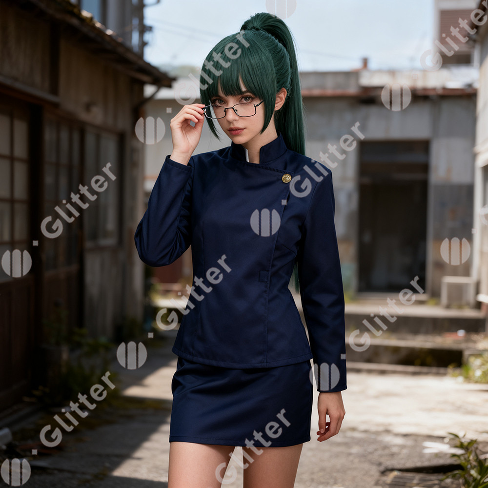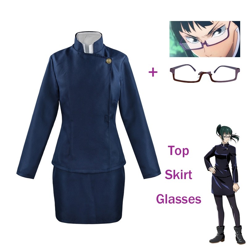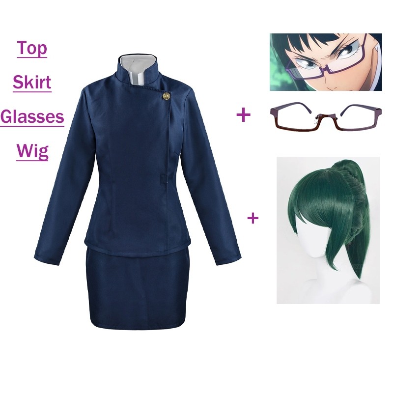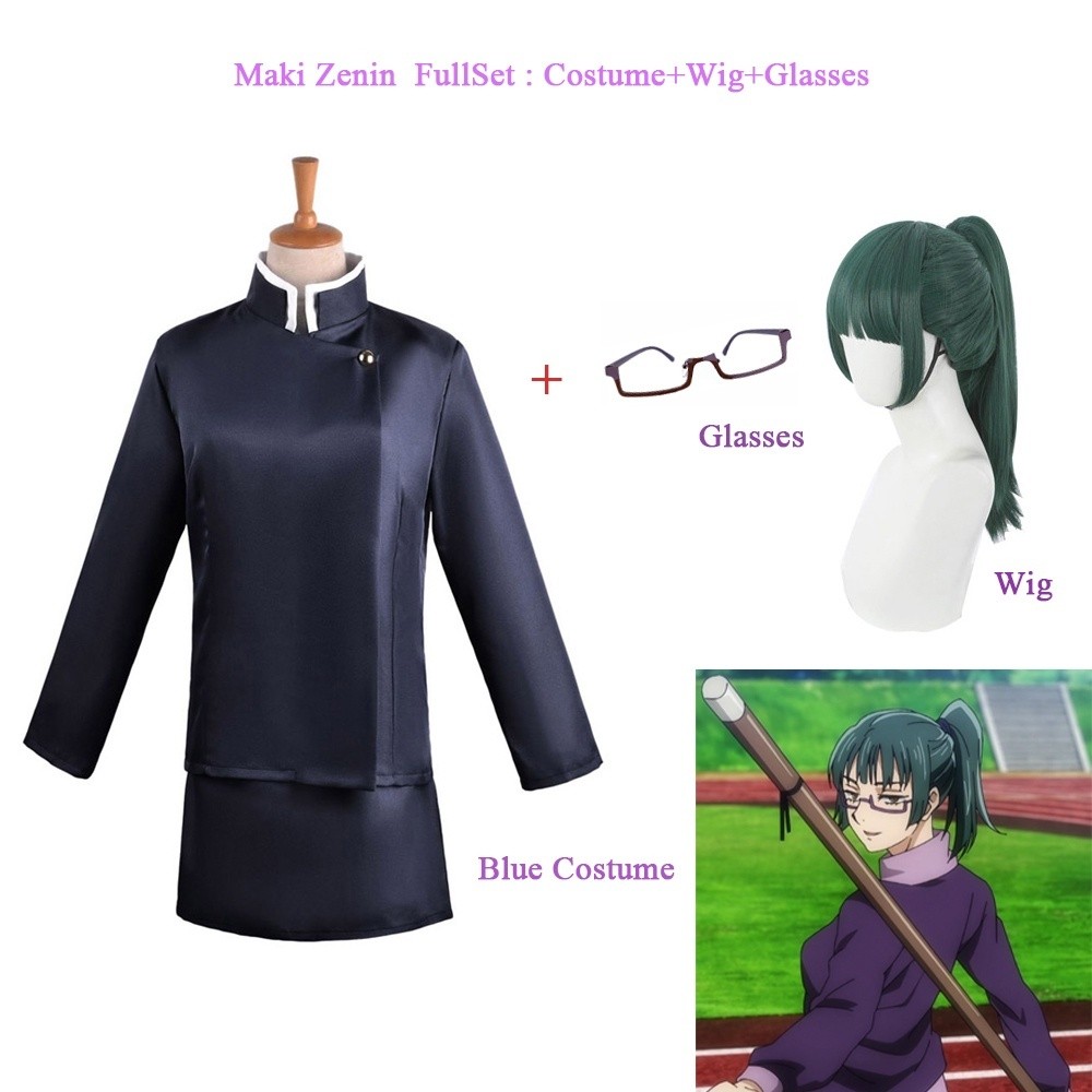 Philippine Anime Jujutsu Kaisen Costume for Women Maki Zenin Glasses Wig Halloween Cosplay Set