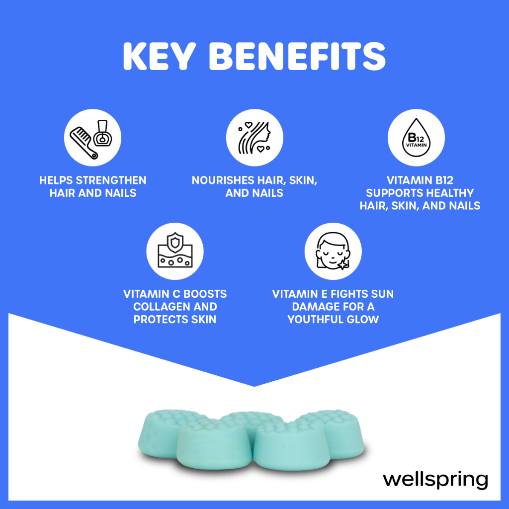 Wellspring Biotin Gummies for Hair Nails Growth Healthy Skin Hair Loss Vitamins