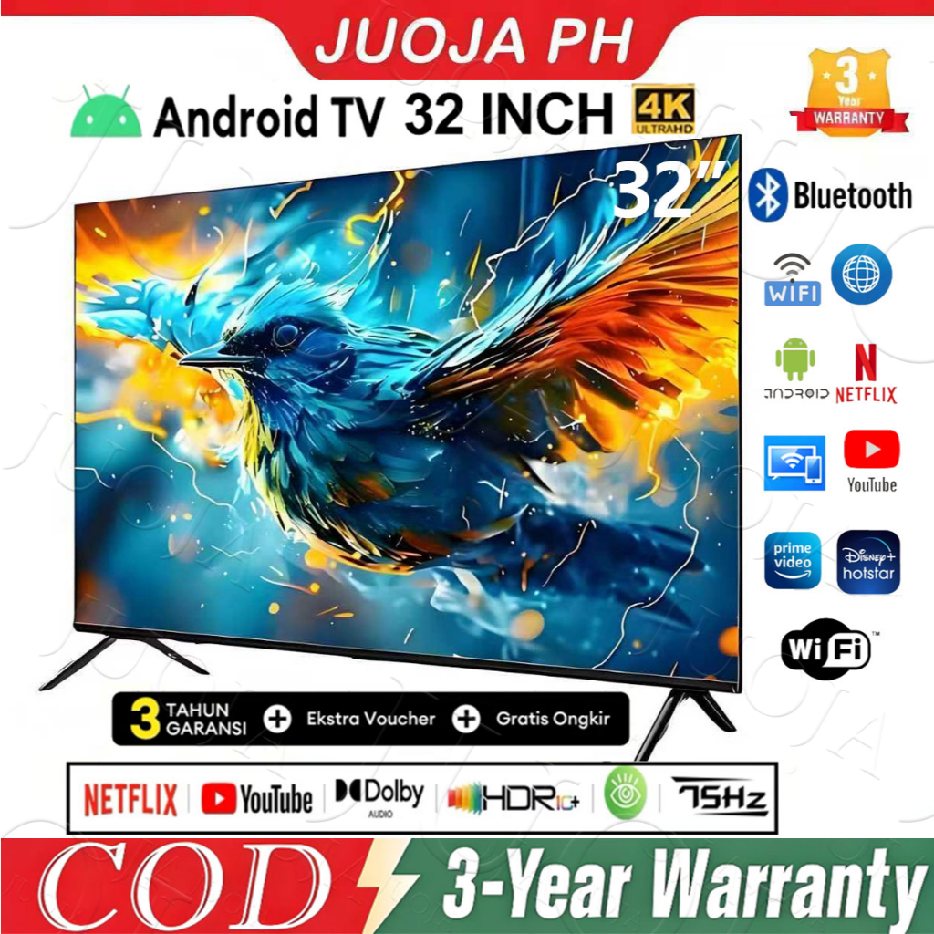 JUOJA 【3 Year Warranty】32 Inch Smart TV, Netflix YouTube Prime Video, Dolby Audio, Metal Frameless