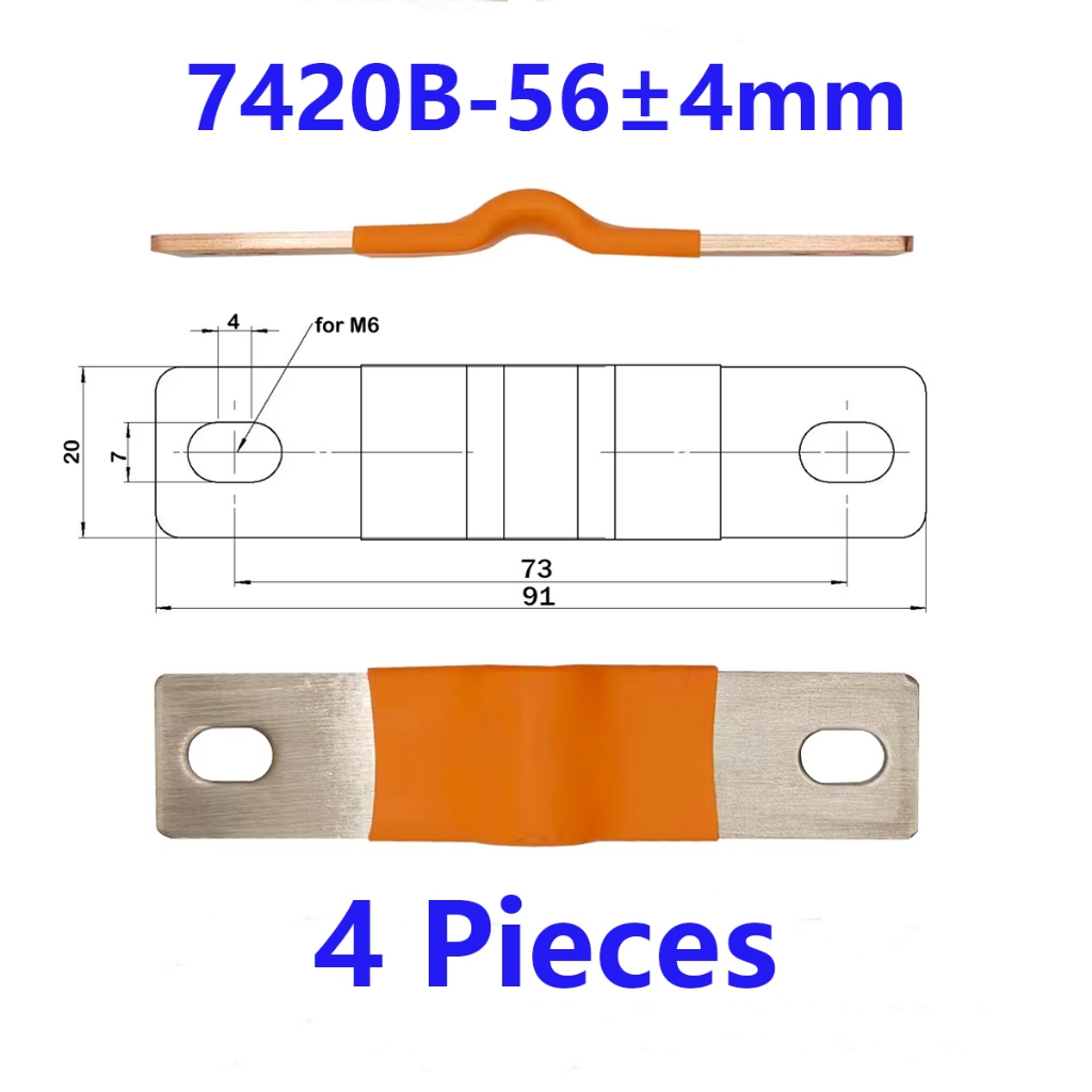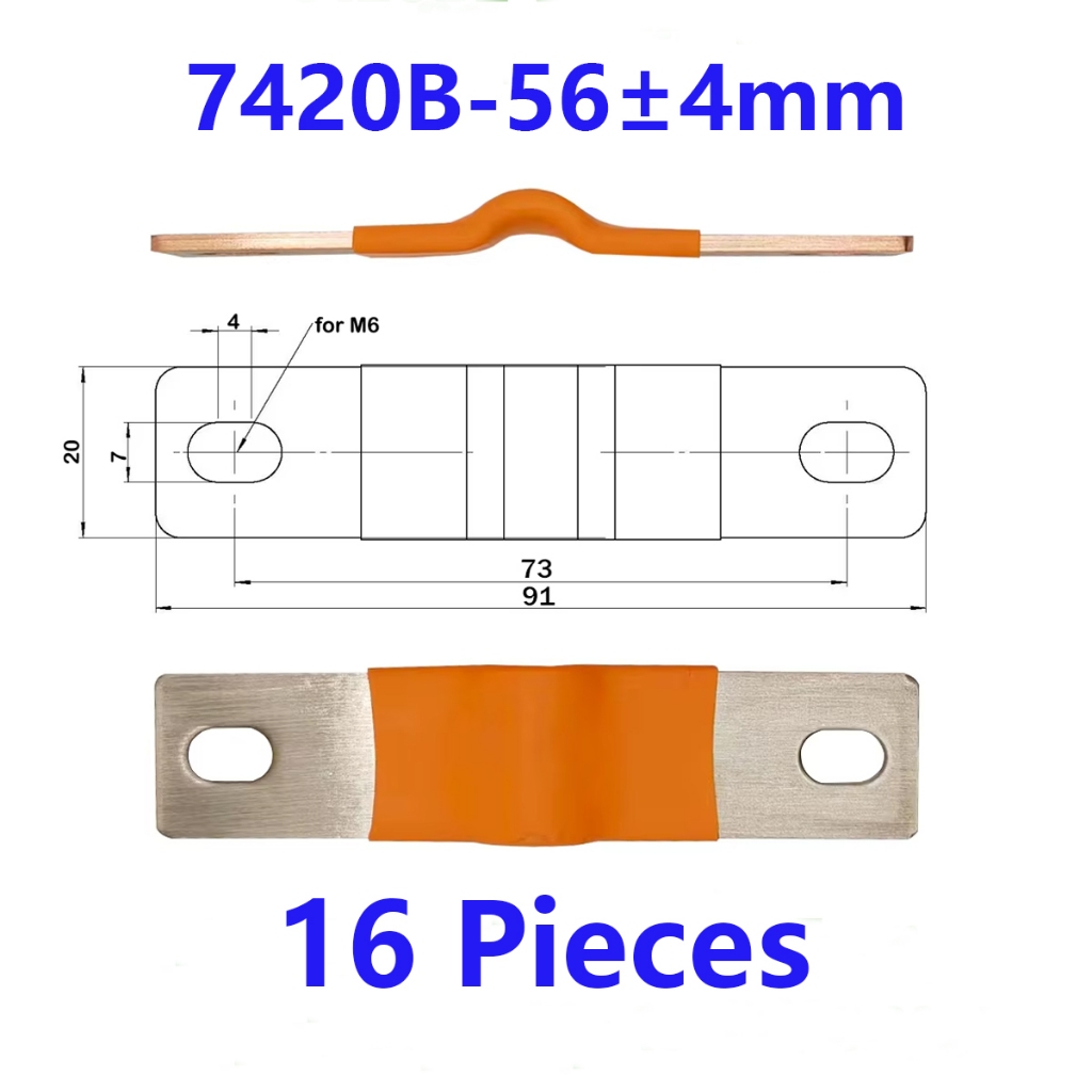 12V Lifepo4 Battery Flexible Copper Busbar Connecter Hole to Hole 56mm 90mm 2mm 400A for 280Ah 320Ah Lifepo4 Battery Use