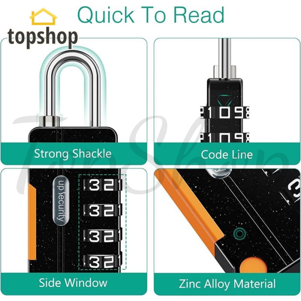 TOPSHOP BBB 4 Digit Combination Lock, Keyless Padlock, High Quality Resettable Password Zinc Alloy