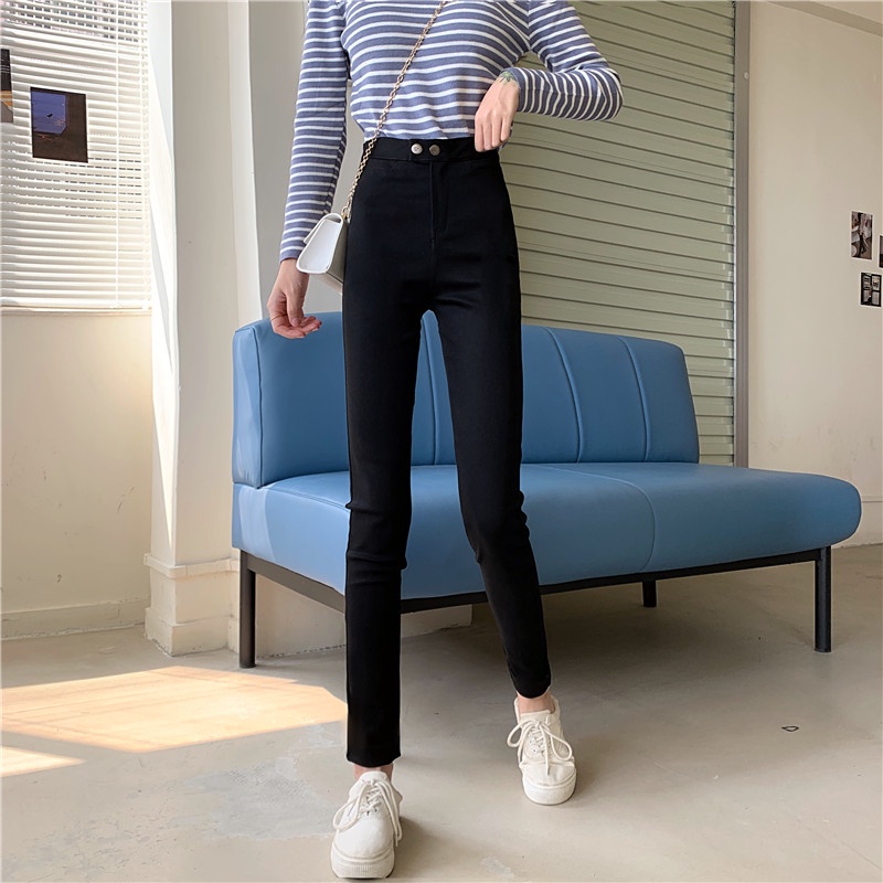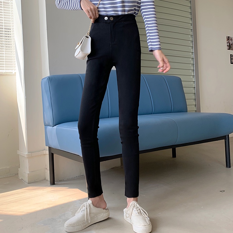 Exclusive [Magic Leggings] No Pilling No Drawing Korean Version Slimmer Look Skinny Pants Girls Black Pants