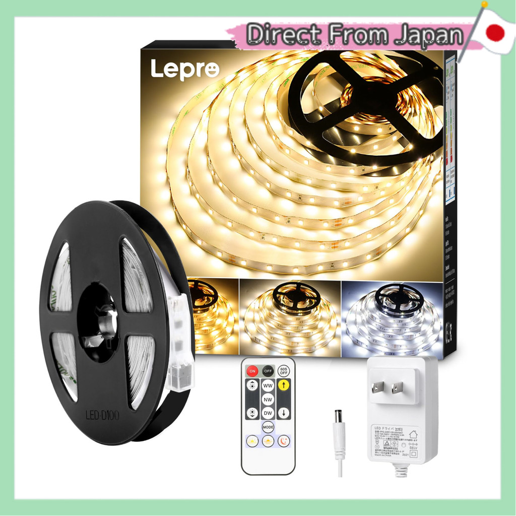 [From Japan] Lepro 5m 12V LED Strip Light, Warm White, Neutral White, Daylight, Adjustable Brightness, Ambient Lighting, Remote Control, Dimmable, Color Adjustable, 3-Pin 2835SMD, Cuttable, Easy Installation, Non-Waterproof, for Shops, Indoors, and Home D