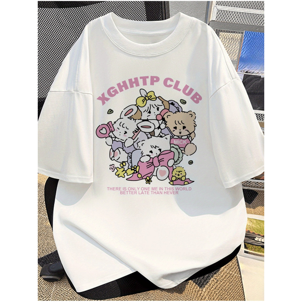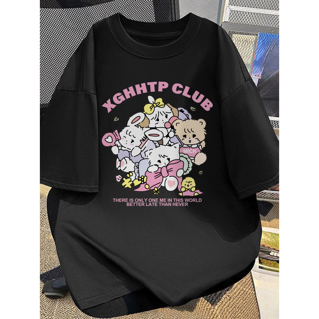 XGHHTP CLUB Men'S & Women'S 100% T-Shirt - Black Casual Short Sleeve Tee with Cute Anime Bear Graphi