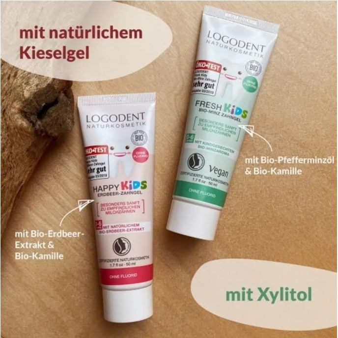 LOGONA Kids Strawberry Toothpaste Gel 50ml [For Milk Teeth, No Preservatives, Microplastic Free]