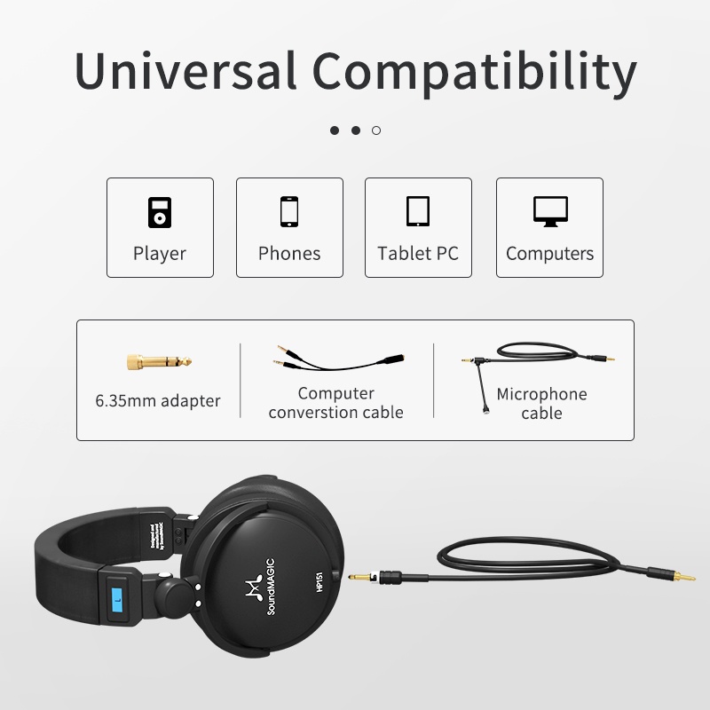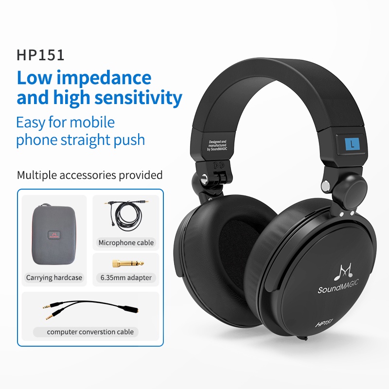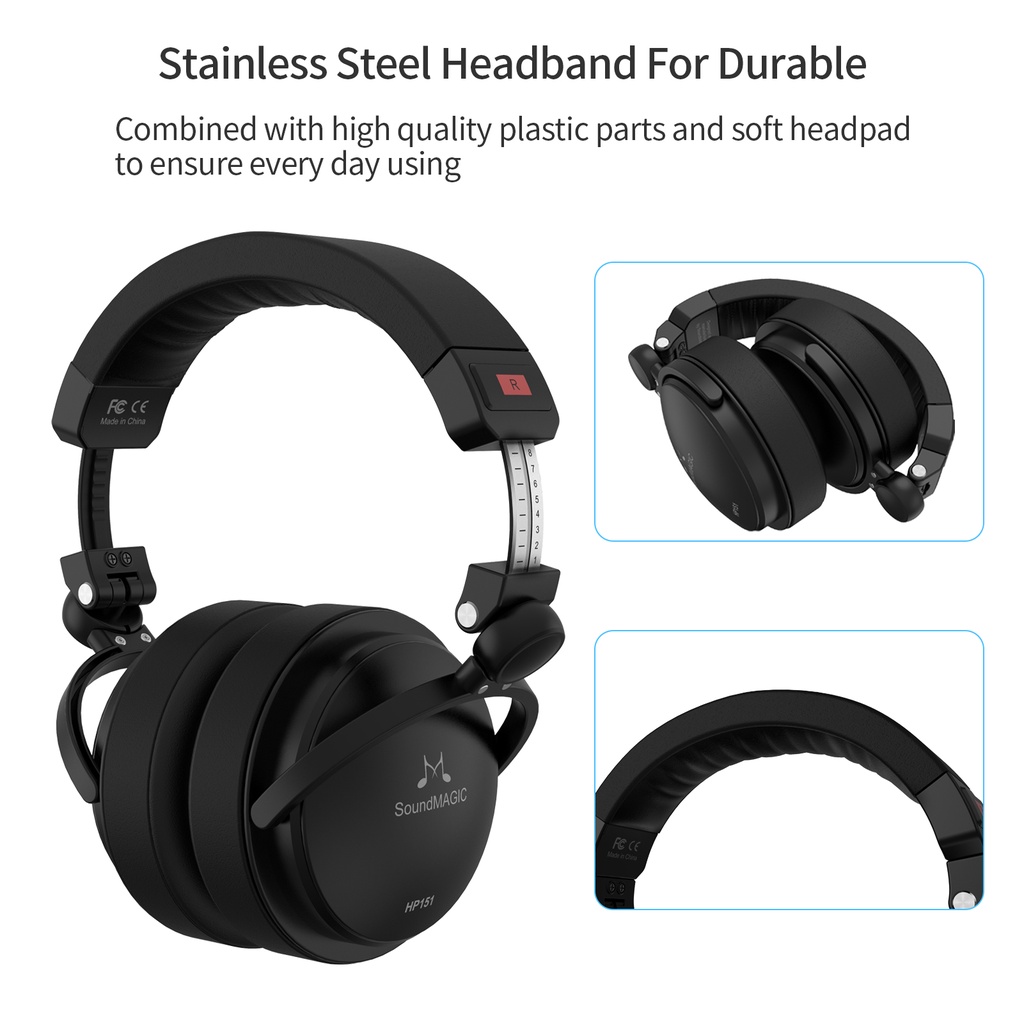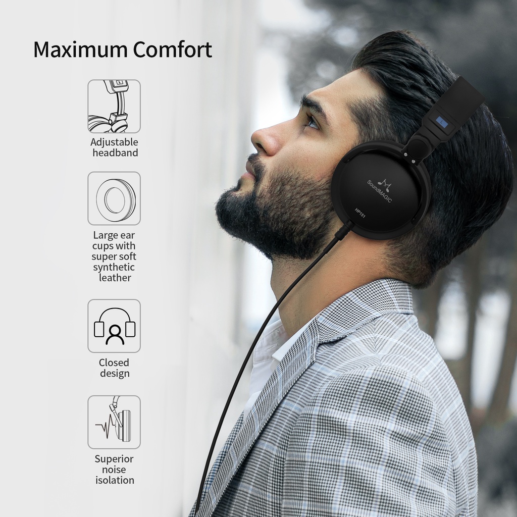 SoundMAGIC HP151 Wired Over Ear Headphones HiFi Stereo Audiophile Headphone Noise Isolating Foldable Headset with Detachable Cables Black