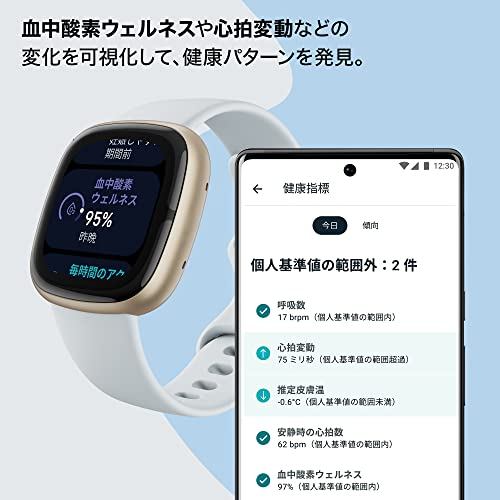 [Suica Compatible] Fitbit Sense 2 Smartwatch in Blue Mist / Soft Gold – Compatible with iPhone and Android / Over 6 Days Battery Life / Alexa Built-in / GPS Enabled / Heart Rate Monitor / Sleep Score / Stress Measurement [Japan Authorized Product]【Japanes