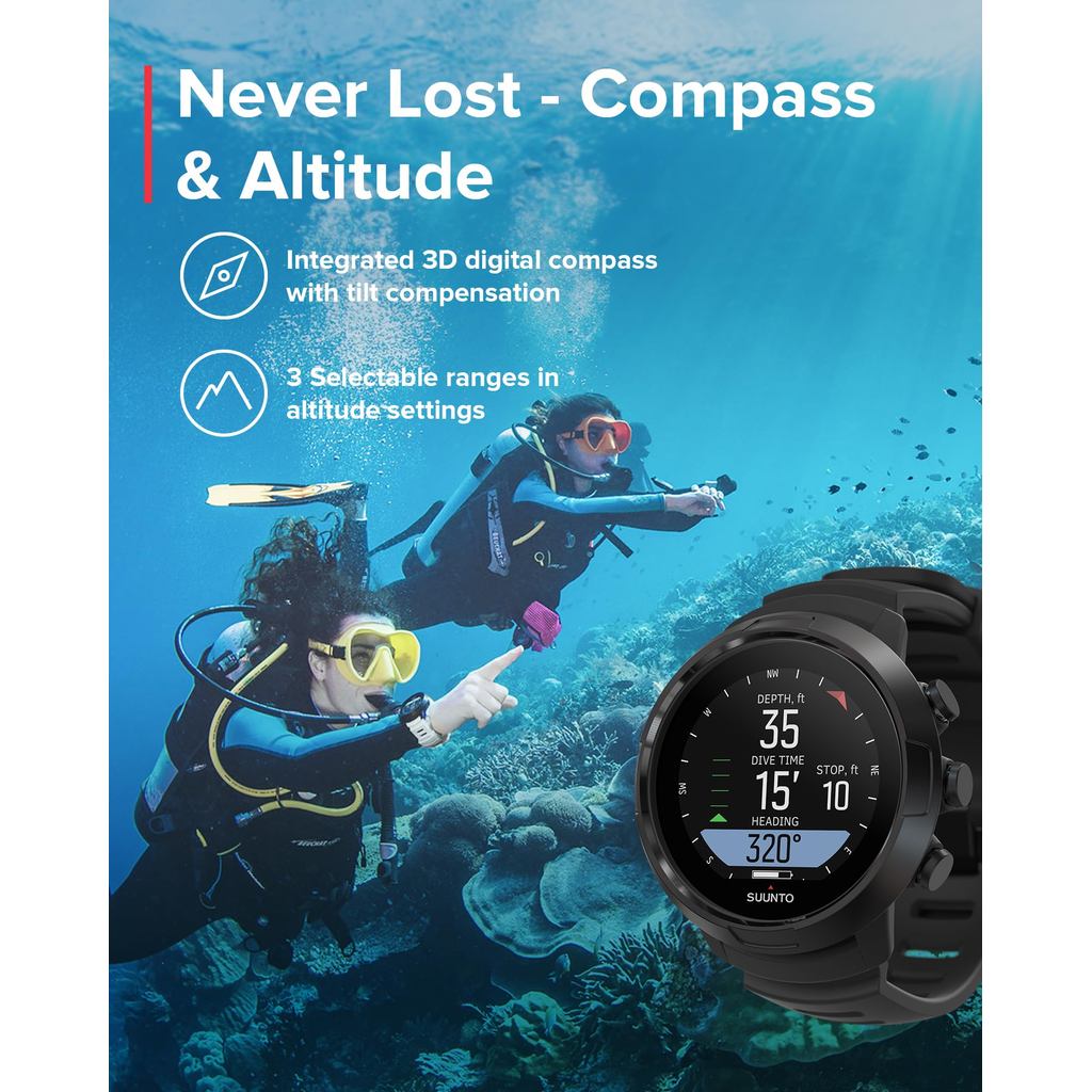 SUUNTO D5 Dive Computer Watch with Digital Compass - Up to 100m Depth, 5 Dive Modes, Tank Pressure Display, Authentic Japanese Model【Japanese Travel Gear】
