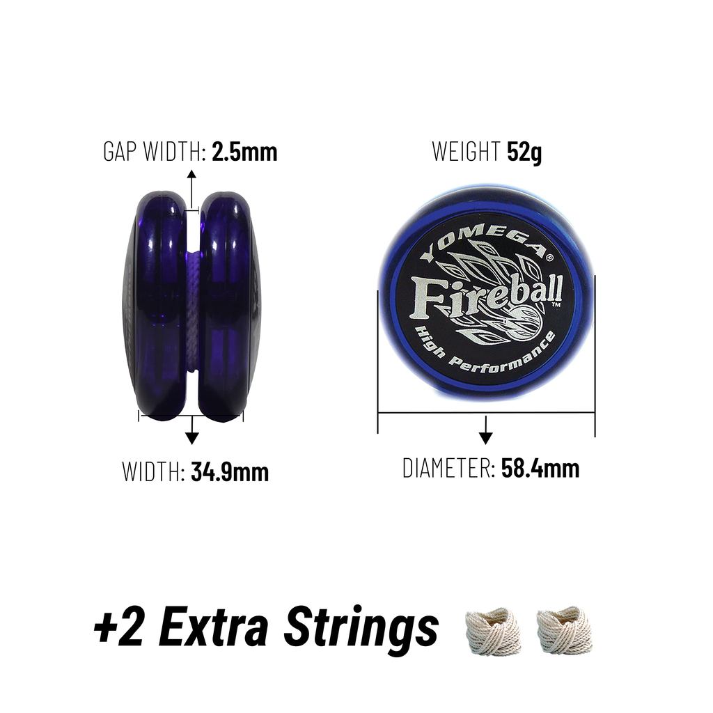 Yomega Fireball - Professional Transaxle Yo-Yo for string tricks, ideal for children and beginners who want to perform like a pro. Includes 2 spare strings (black cap, blue body)[Direct from Japan]