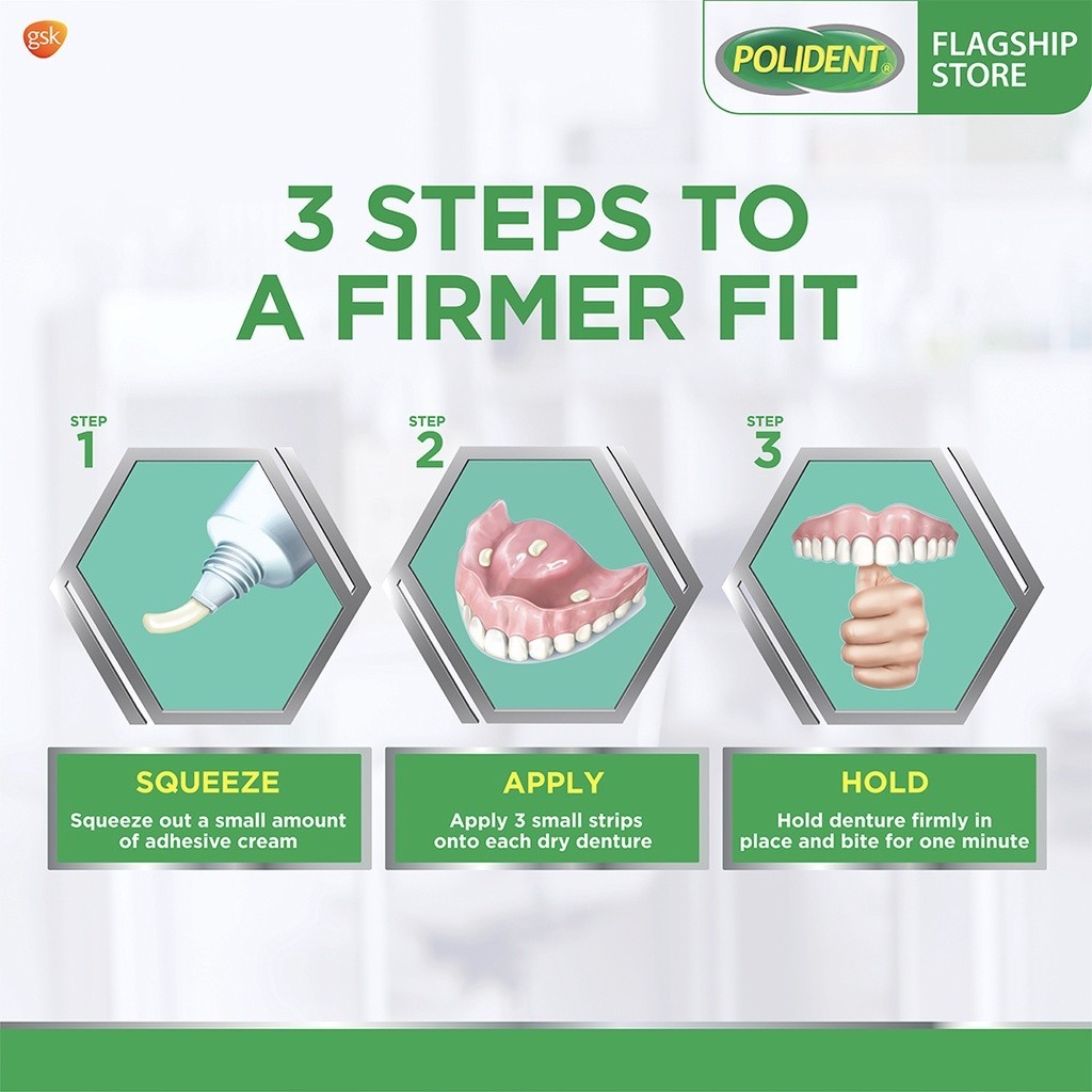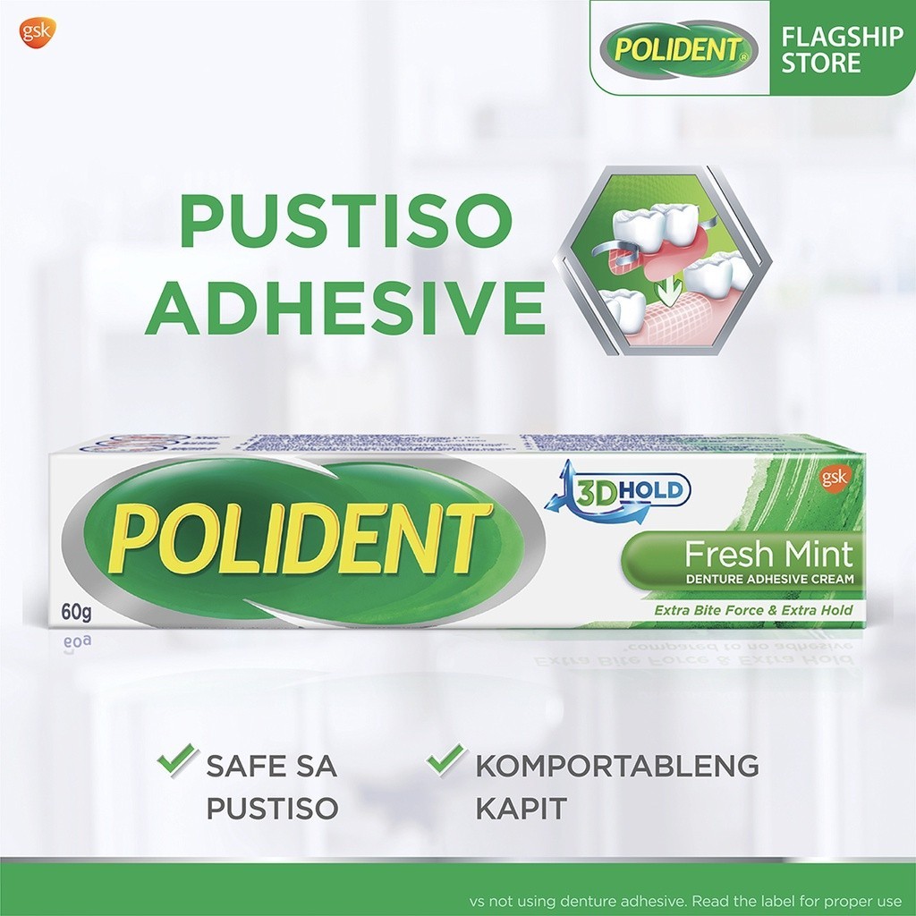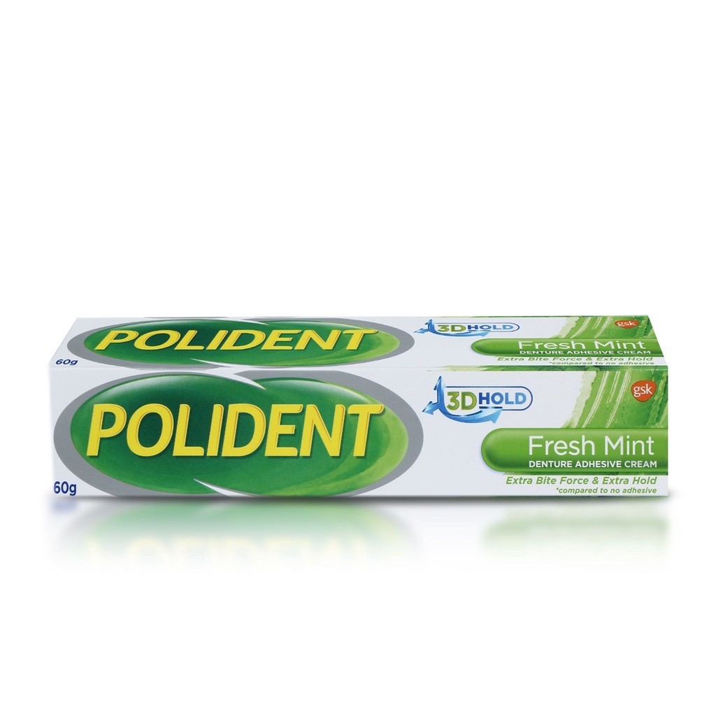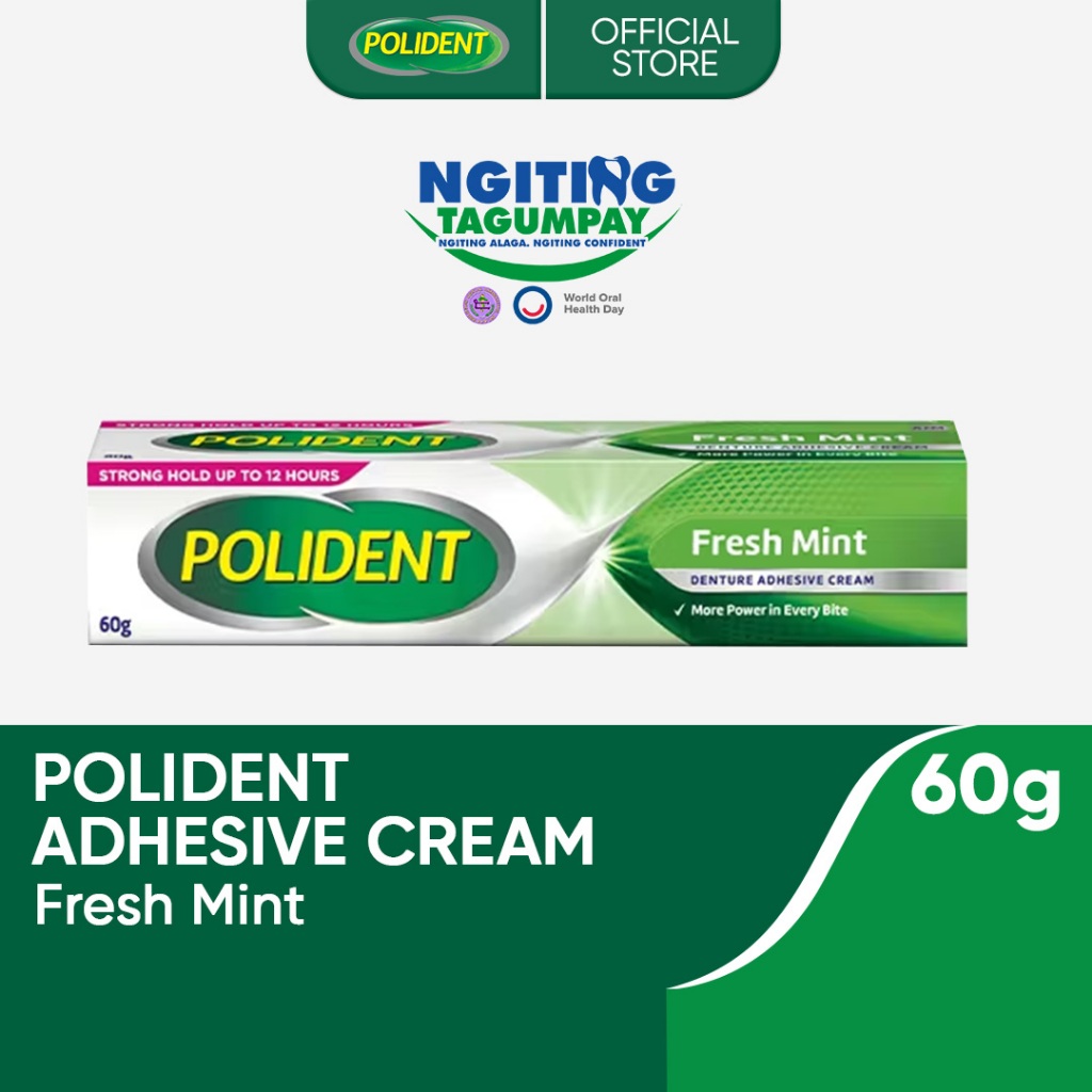 Polident Denture Adhesive Cream Fresh Mint 60g up to 12-hr Strong Kapit, Gum Comfort, Food Blocker