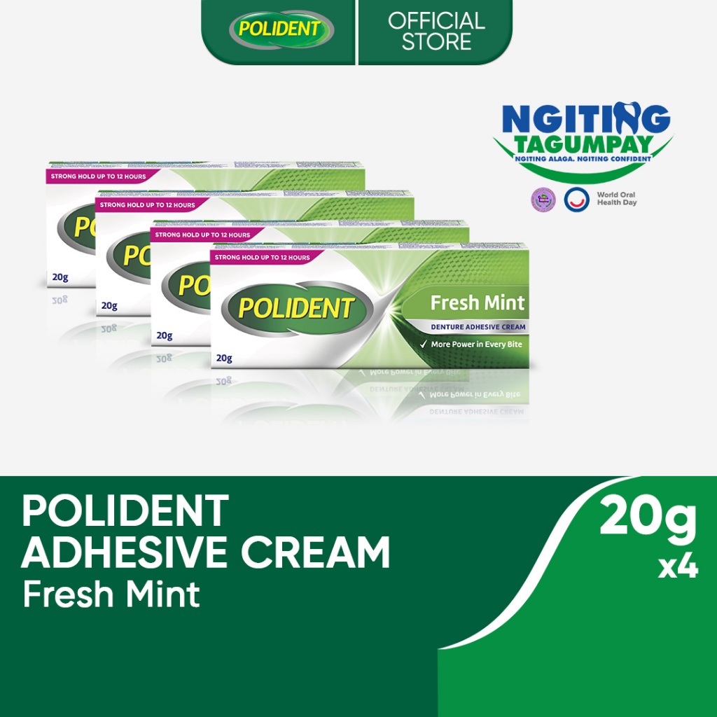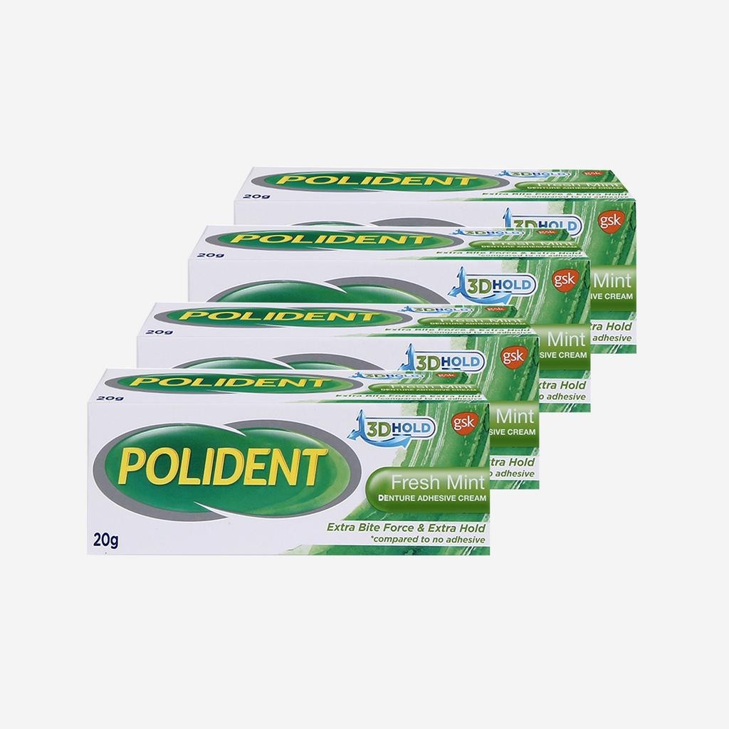 Polident Denture Adhesive Cream Fresh Mint 20g x4 12-hr Strong Kapit, Gum Comfort, Food Blocker