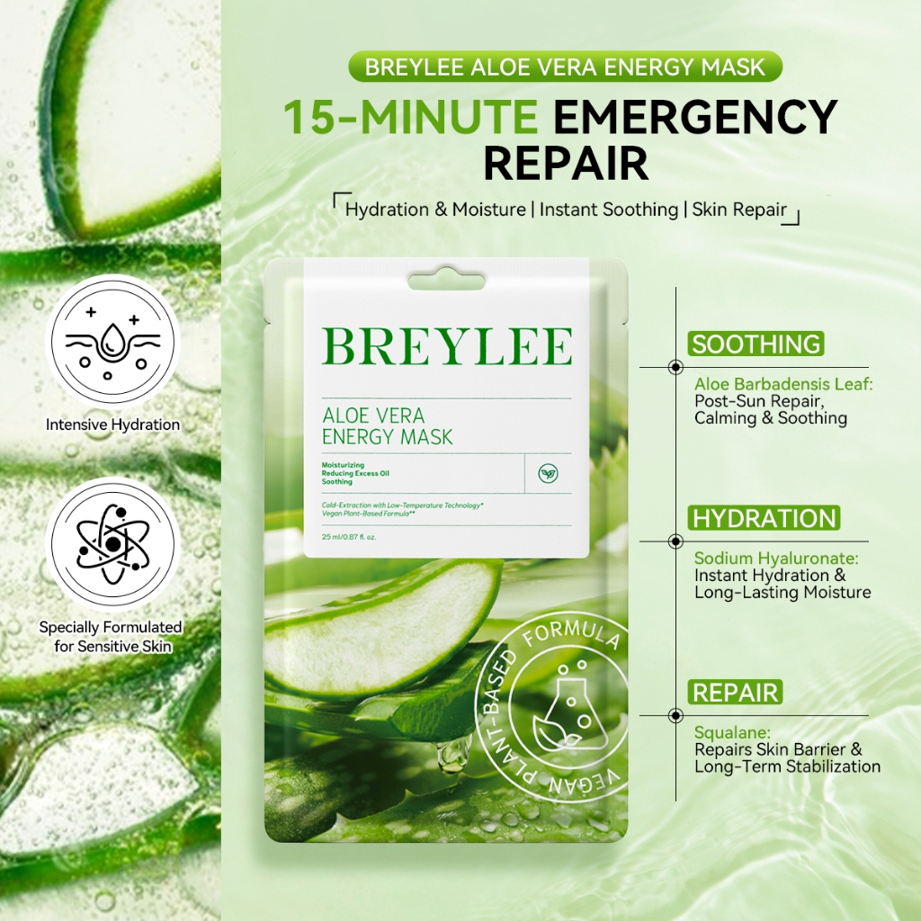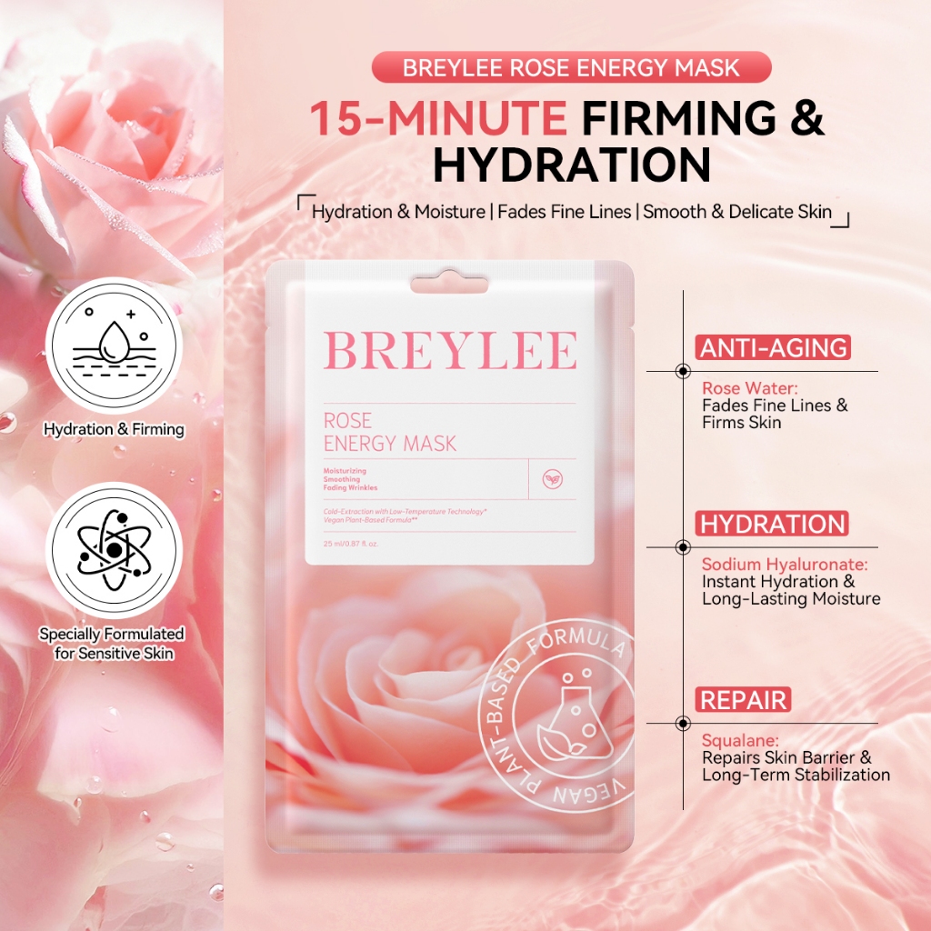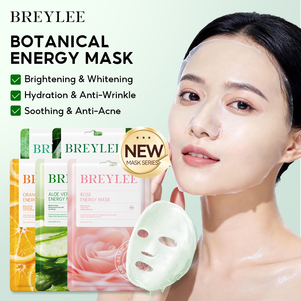 Breylee Botanical Facial Mask Vitamin C Whitening Mask Rose Anti-aging Aloe Vera Repairing Face Mask Centella Asiatica Calming Acne Treatment Anti-acne Soothing Moisturizing Energy Mask Brightening Skin Care