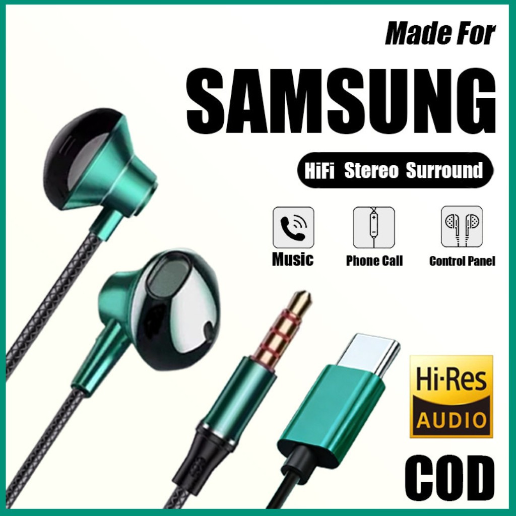 Type C Headphone HiFi Bass Stereo Volume Control Mic 3.5mm Wired Earbuds For SamSung Earphone