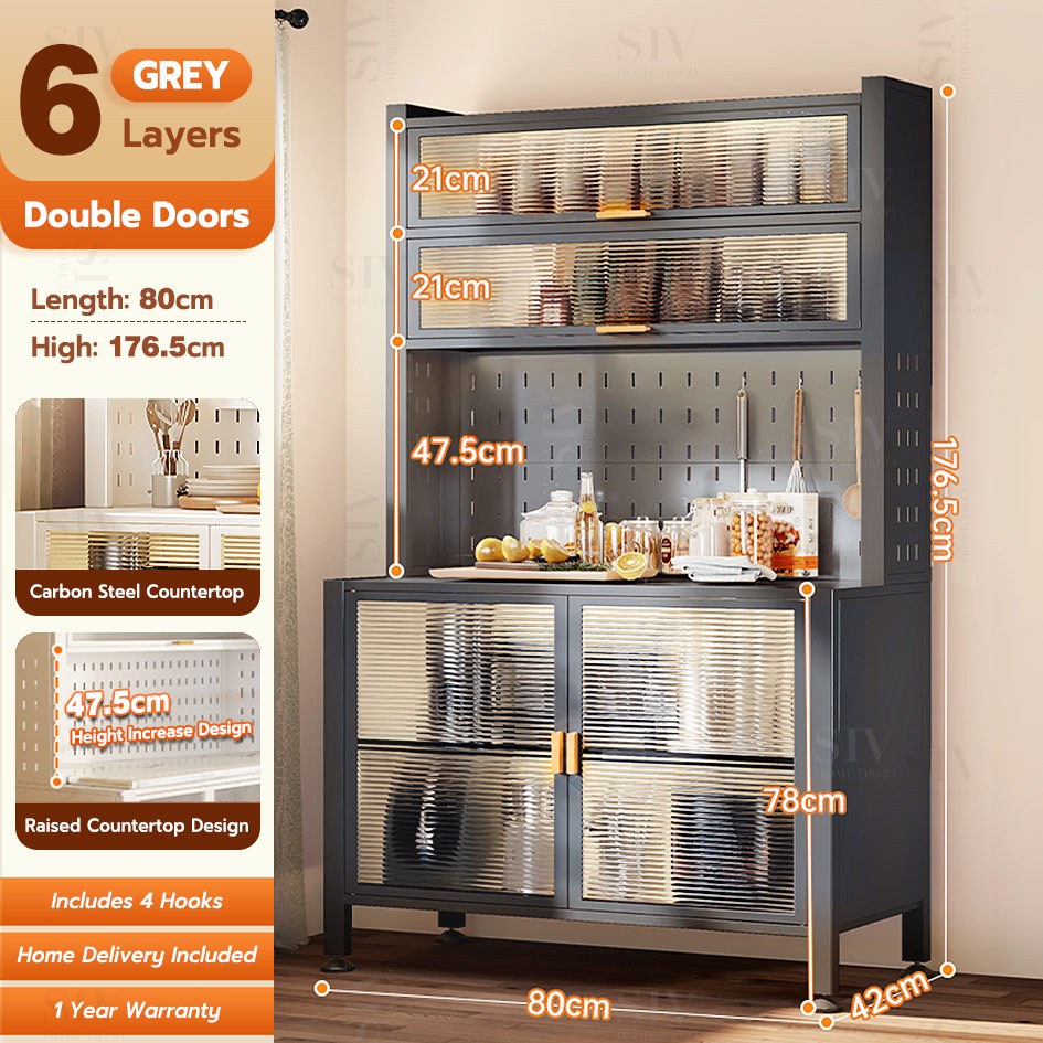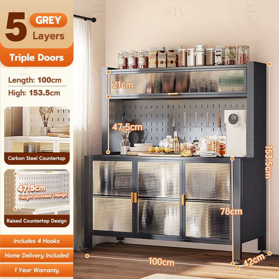 【Extra Thick】SIV Kitchen Cabinet Microwave Oven Rack Storage Shelves With Pegboard Organizer & Wheel