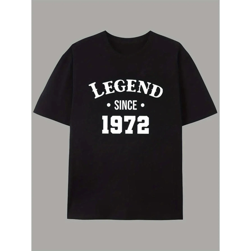 Men's Black Cotton T-Shirt with "Legend Since 972" Print,Casual&Breathable,Suitable for Weekend Shop