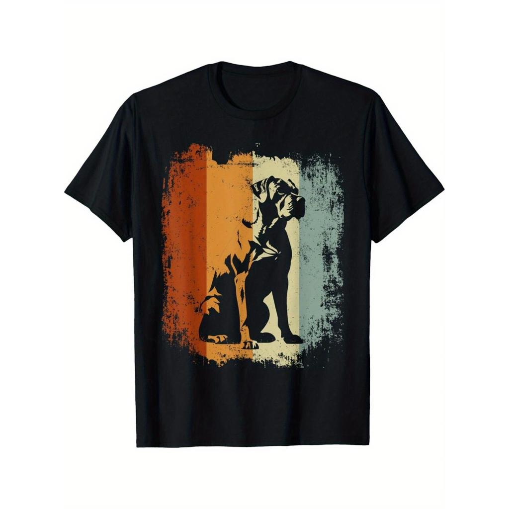 Mens Boerboel Dog Graphic T-Shirt - Cotton Retro Geometric Print Crew Neck Tee, Loose Fit Casual Out