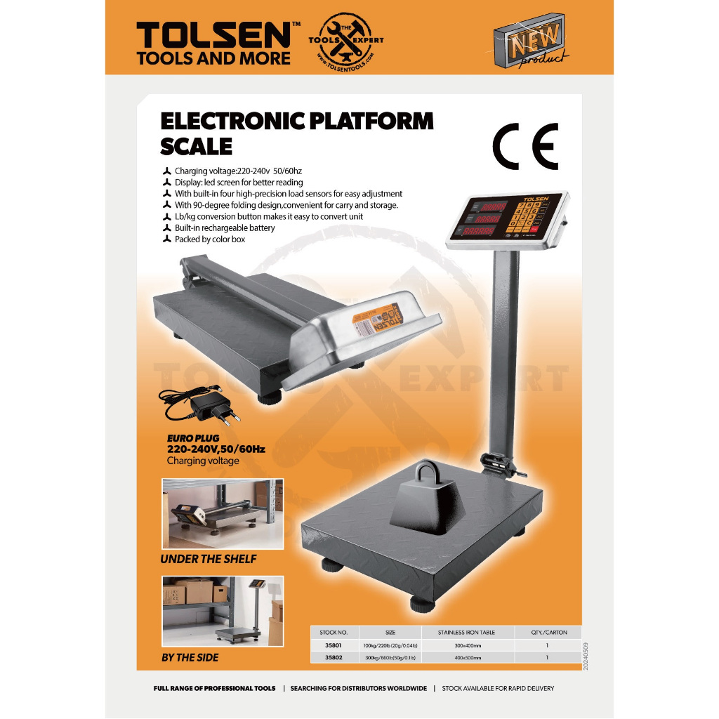 Tolsen Electronic Digital Platform Weighing Scale w/ Built in Battery (100KG - 300KG Capacity)