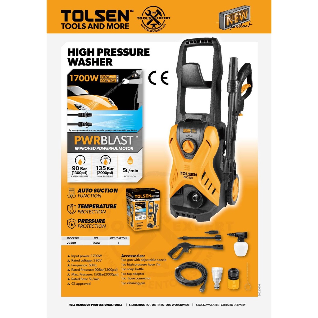 Tolsen High Pressure Washer 2000PSI w/ Self Priming Function (1700W) PWRBLAST 79589