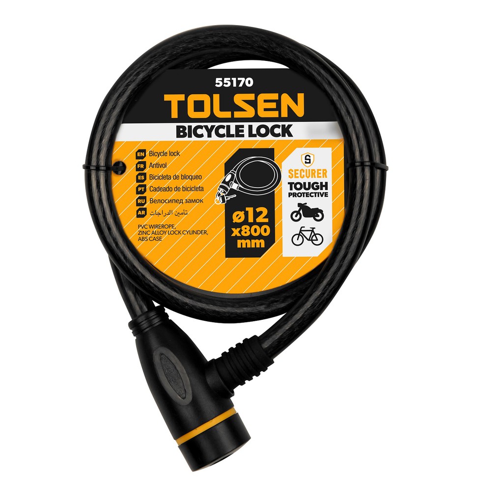 Tolsen Heavy Duty Bicycle Lock (12x800mm) with 2 Keys 55170
