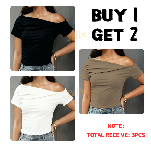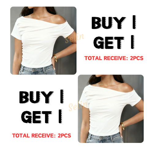 Buy1 Take2 Cotton Short Sleeve Basic Elegant Blouse for Women's Clothes Womenswear