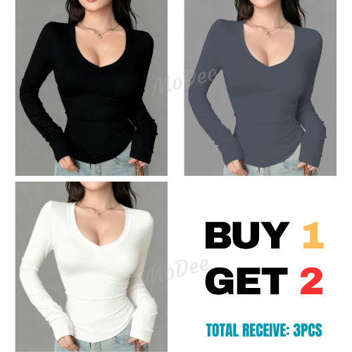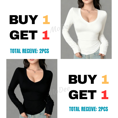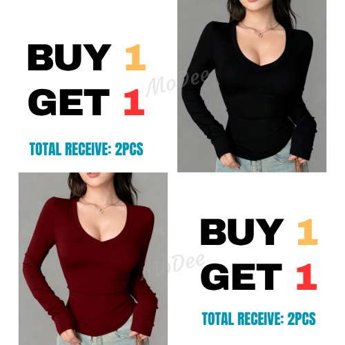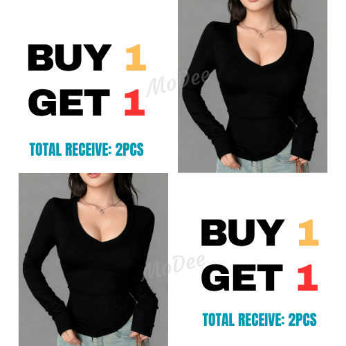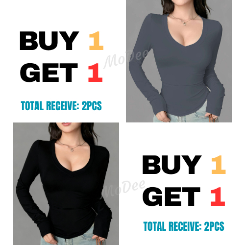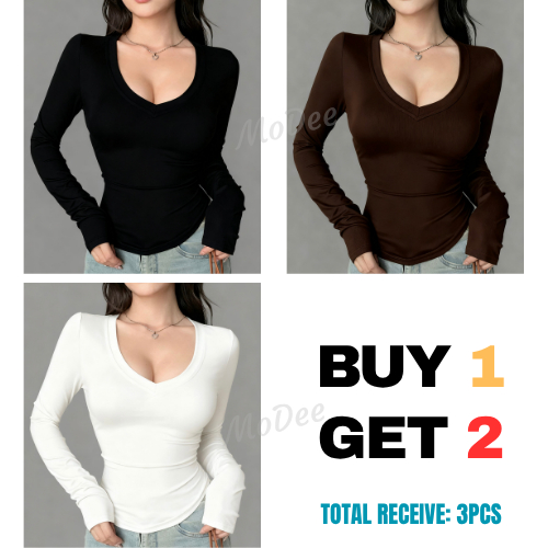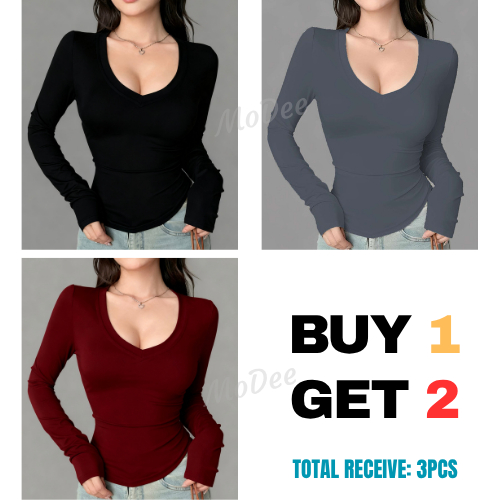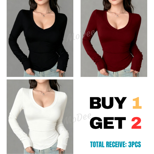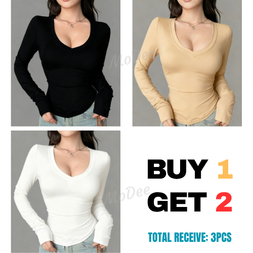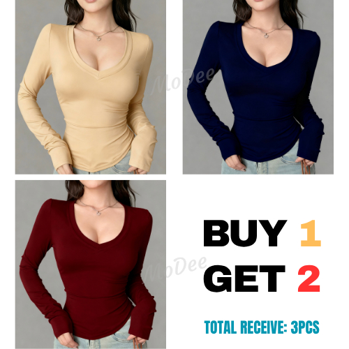 Buy1 Take2 & BUY1 Take1 V-Neck Long Sleeve Premium Cotton Top