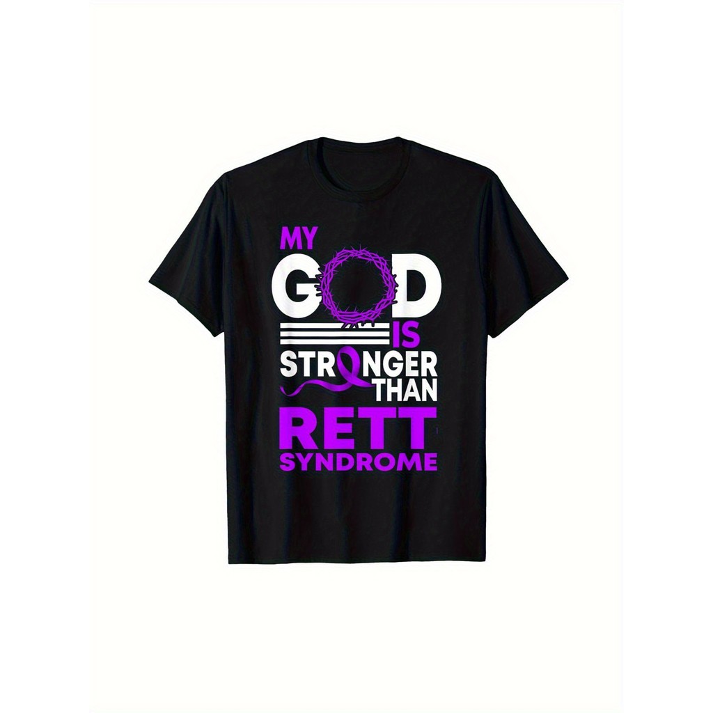 My God Is Stronger Than Rett Syndrome Awareness Ribbon T-Shirt - Cotton Heavyweight Graphic Tee, Reg