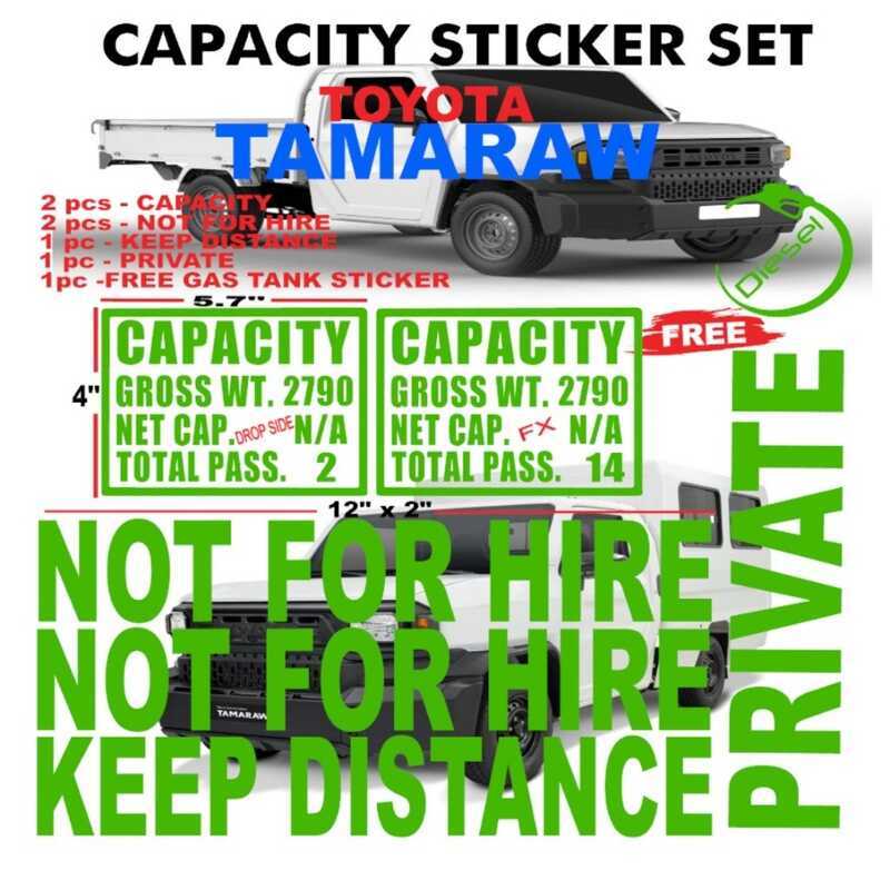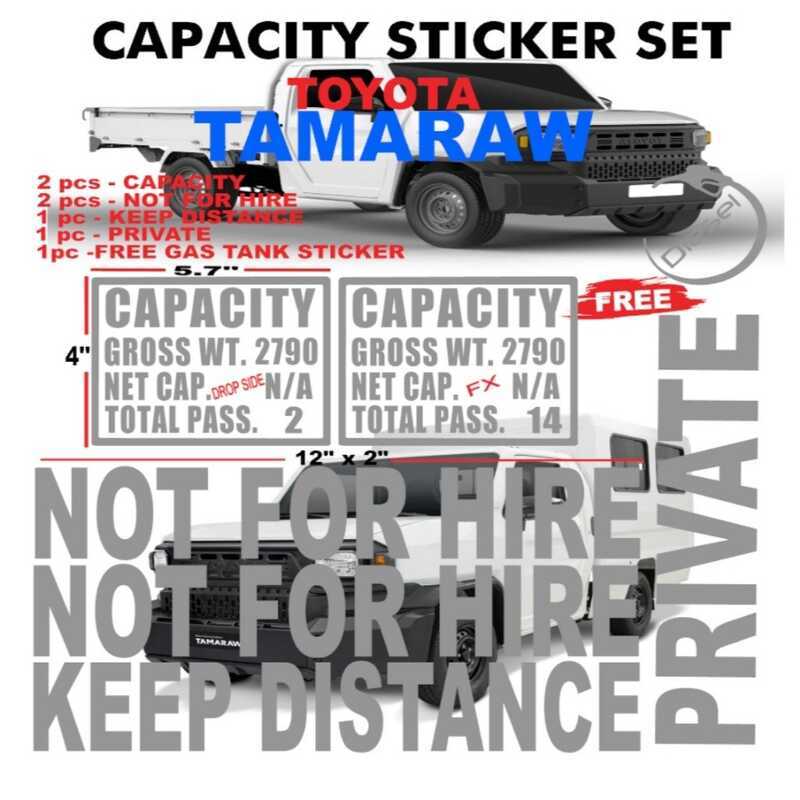 Toyota Tamaraw Fx / Tamaraw Dropside Capacity Sticker Set Body Sticker