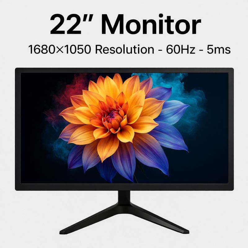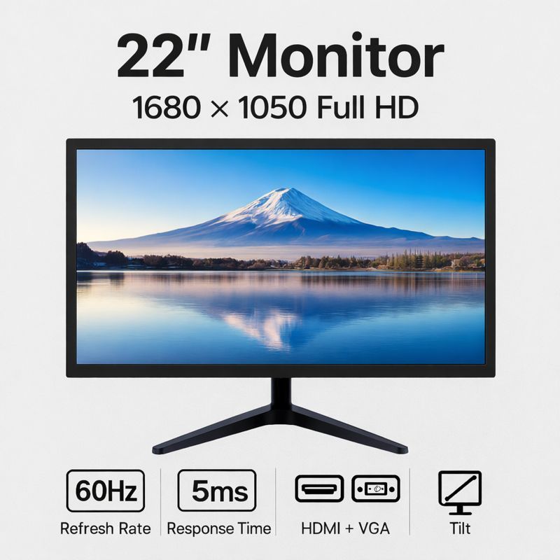 22 Inch FHD Monitor 1920×1080 | 60Hz 5ms | HDMI + VGA | Slim Bezel | Home Office Display