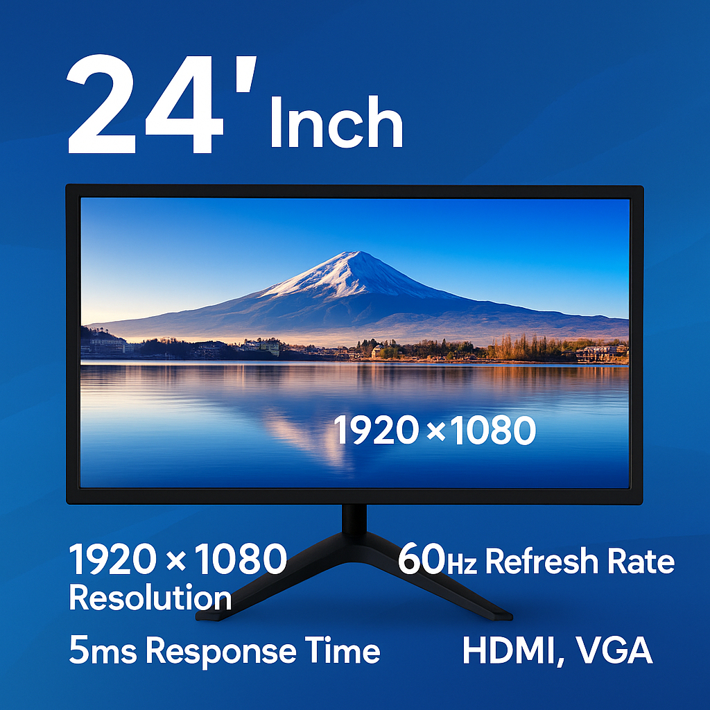24 Inch FHD Monitor 1920×1080 | 60Hz 5ms | HDMI + VGA | Ultra Slim Bezel | Home Office Display