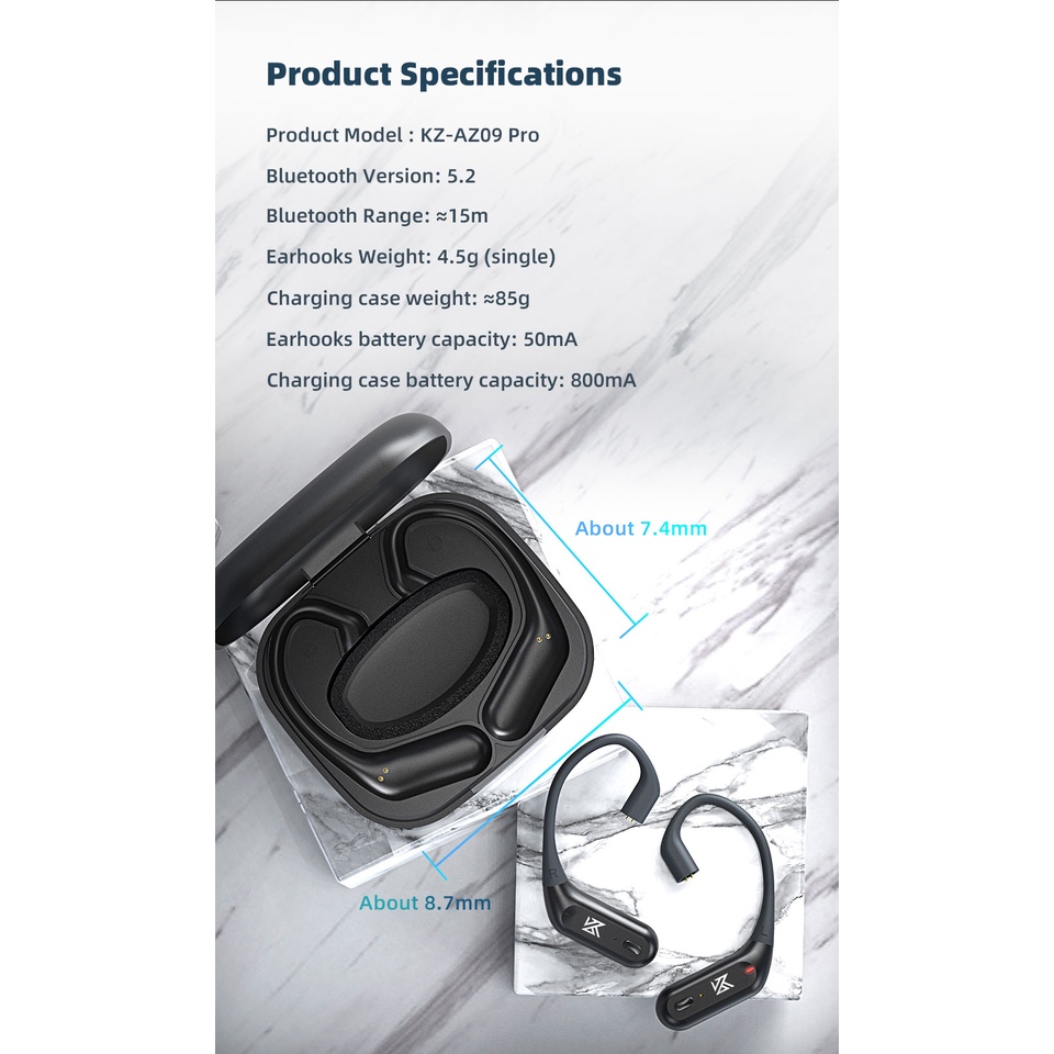KZ ZSN AZ09 Pro Upgrade Wireless Headphones Bluetooth-compatible 5.2 Cable Wireless Ear Hook B/C PIN Connector With Charging Case